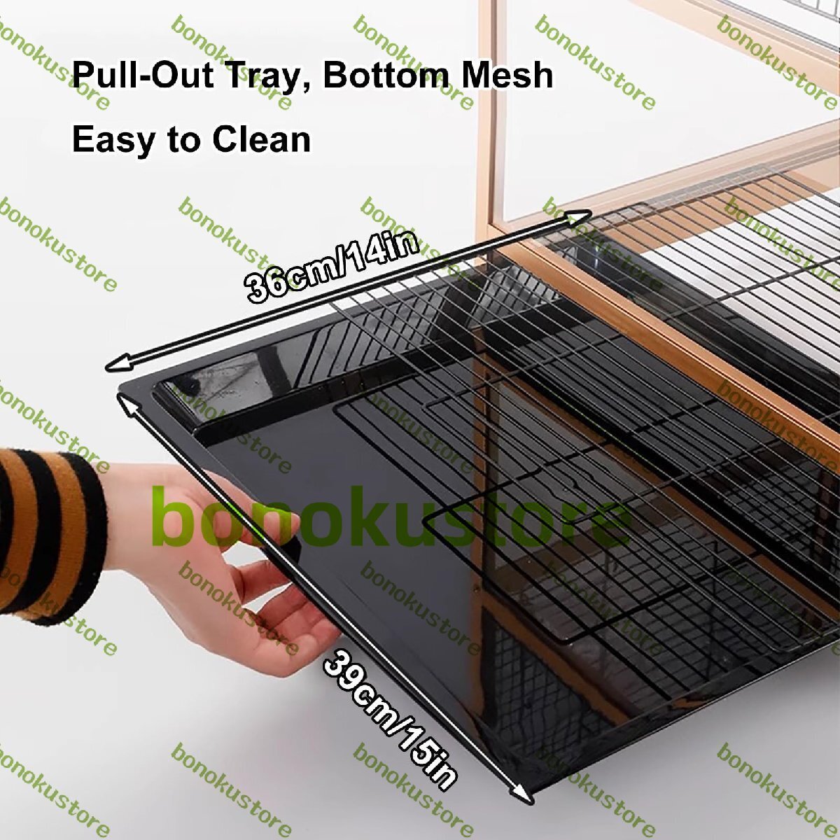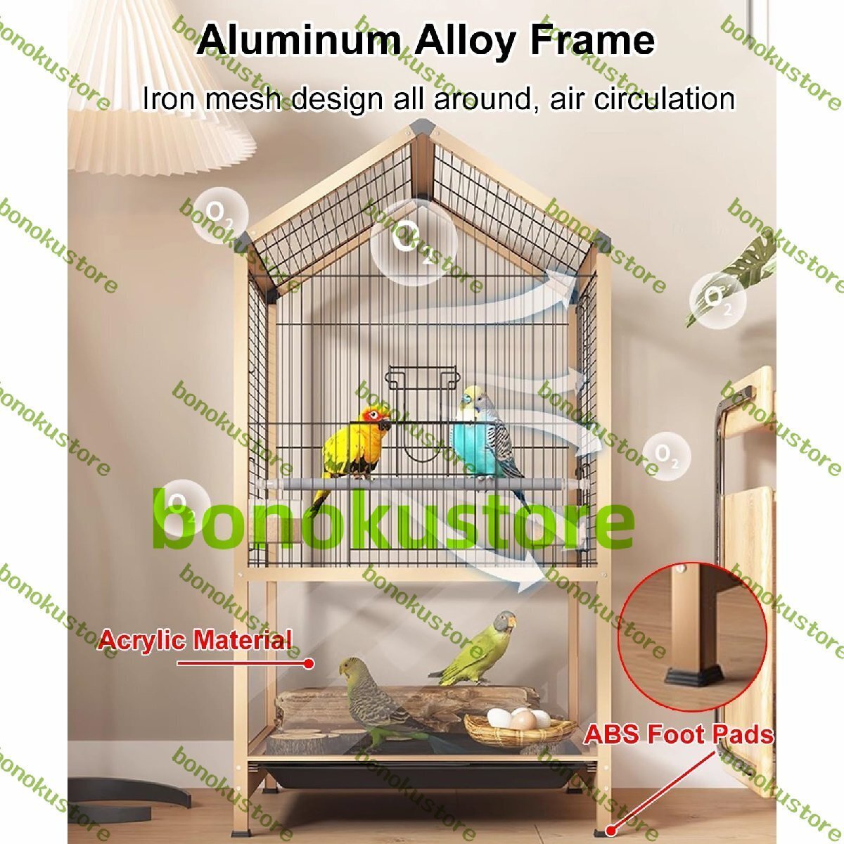 耐久性のある素材:鳥かごはアルミ合金フレームと金網で作られており、錆びにくく、長期間使用しても変形したり損傷したりしません。下層はアクリル透明プレートで設計されており、いつでもペットの動きを観察し、インタラクティブ性を高めることができます