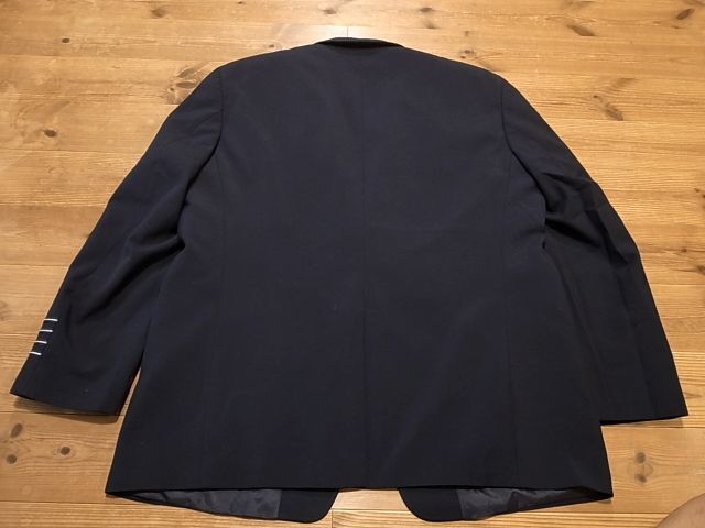 ◆ブランド 「CINTAS」 アメリカ古着 ●サイズ表記 46R 実寸サイズ 4XL(5L)相当 肩幅…52cm(肩先から肩先の間の長さ) 身幅…64cm(両脇を横直線に結んだ長さ) 着丈…78cm(後衿ぐり中央から後身頃裾) 袖丈…64cm(袖付けの肩先から袖先) ※平置き状態での素人採寸ですので、多少の誤差はご了承ください。 ●素材…55%POLYESTER 45%WOOL オールシーズン対応 ●色…紺 ●ポケット… フラップポケット ●裏地…総裏仕立て ●ベント…センターベント ●製造国表記…COSTA RICA ●状態…使用感は少ない美品です。 ★送料 全国一律 700円 佐川急便 (北海道900円 沖縄その他離島1700円) ※複数ご購入の場合、同梱発送可能です。 |