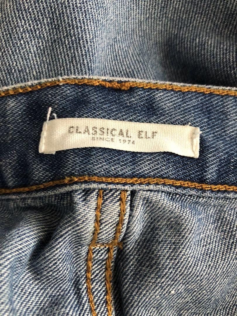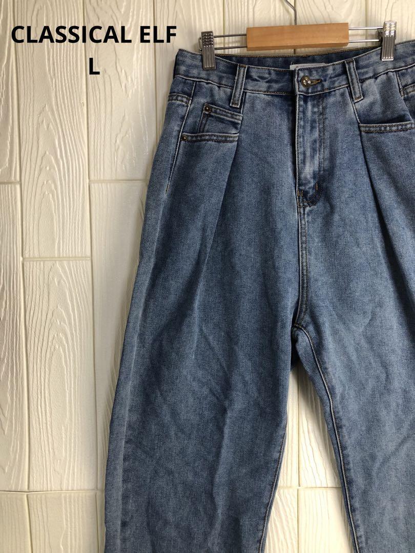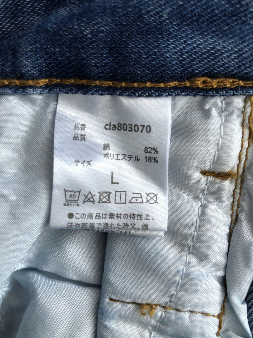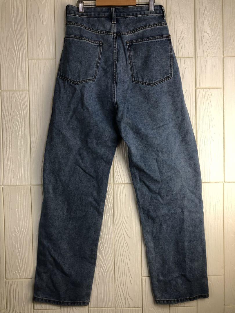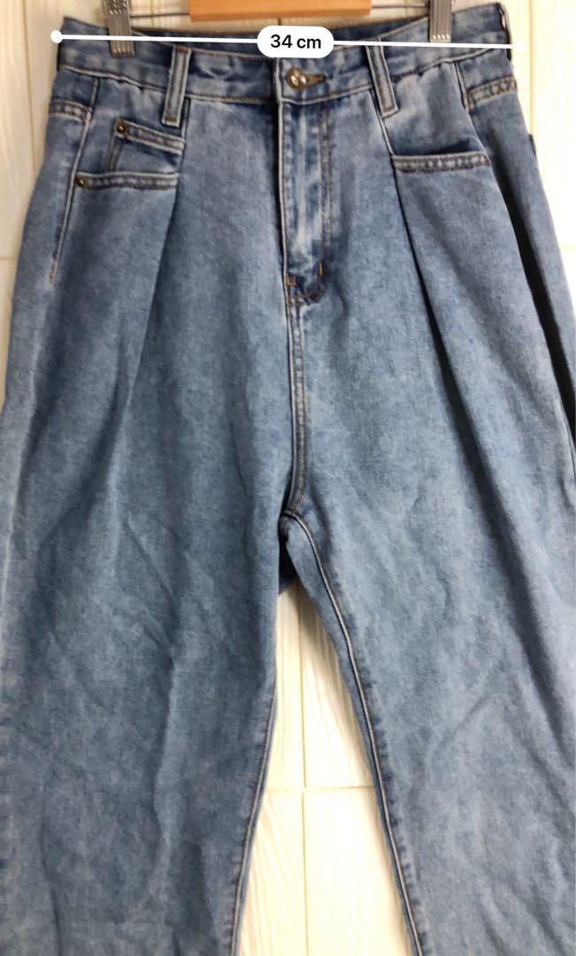 ライトブルーのデニム、ウエスト68cm、股下70cmのスタイル。