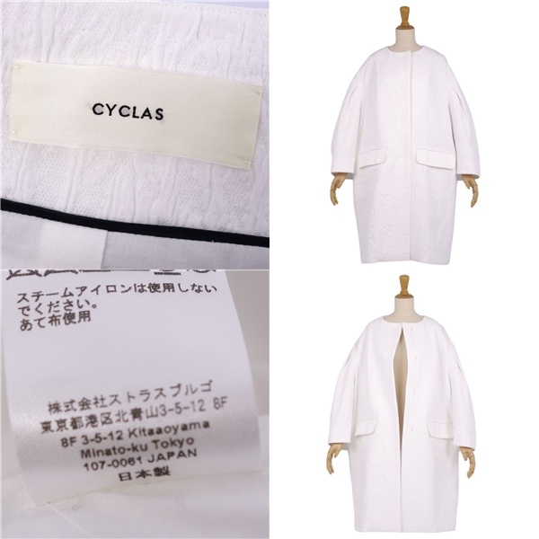 | 美品 シクラス CYCLAS コート ロングコート ロングスリーブ 長袖 ポリエステル アウター レディース 34(S相当) ホワイト |
