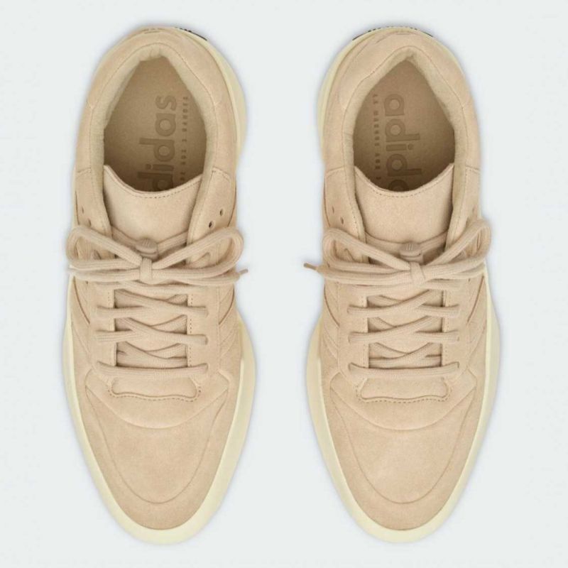 ヒールタブにはadidasのブランドロゴが入り、ソールのかかとにはFear of Godの名を誇らしげに示す