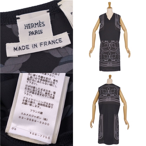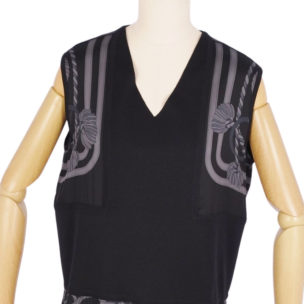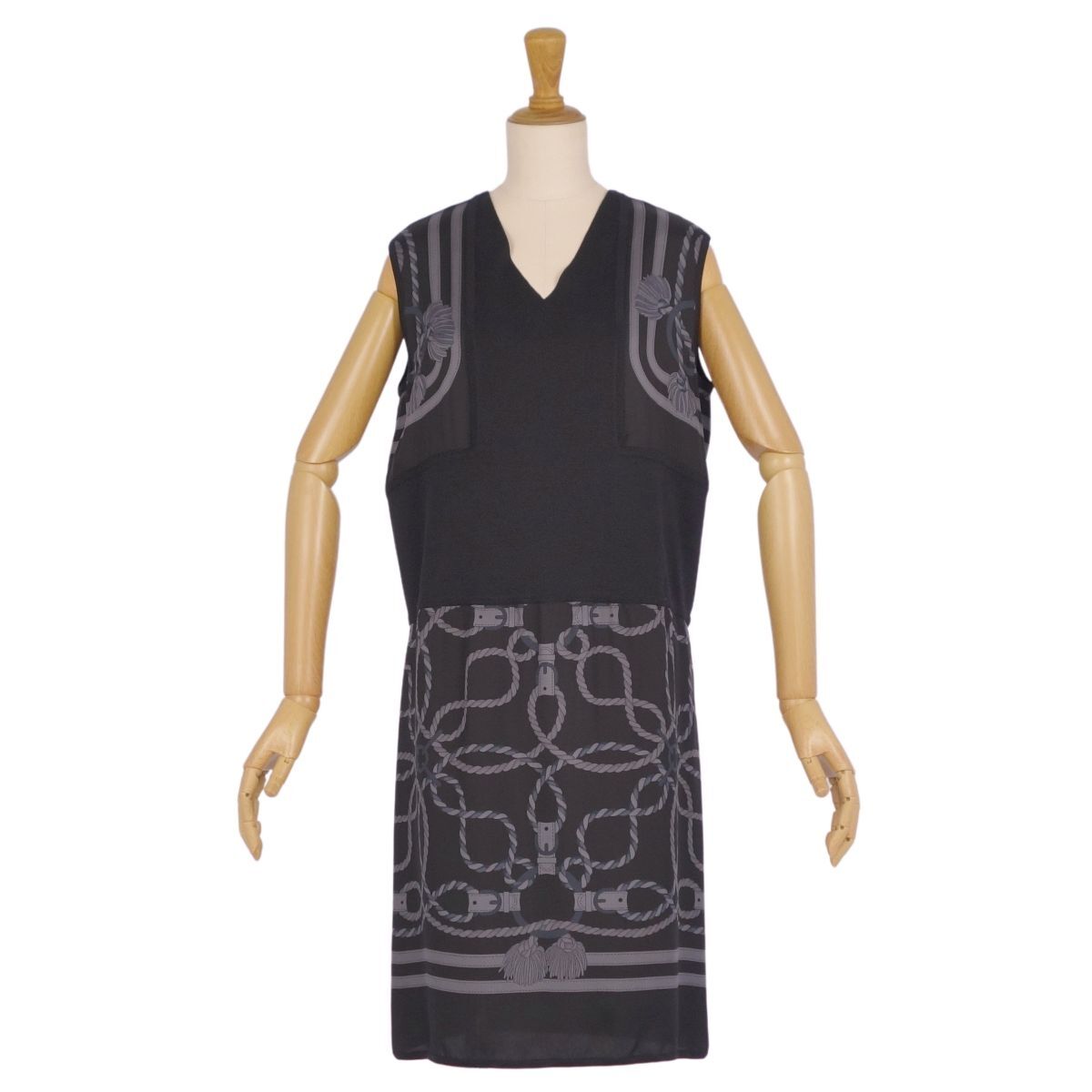 | 極美品 エルメス HERMES ワンピース 20SS ノースリーブ ニット シルク切り替え トップス レディース 34(S相当) ブラック |