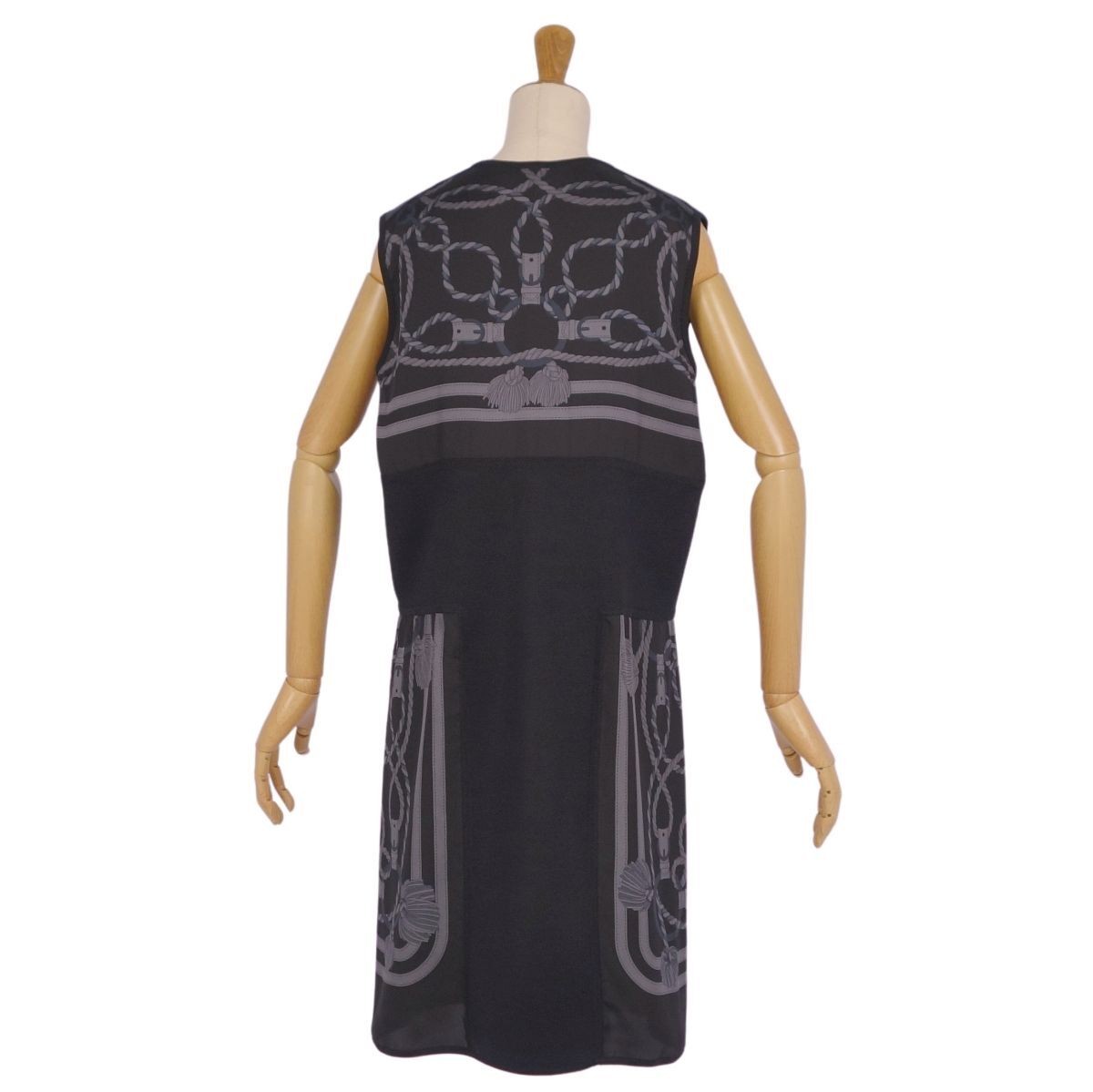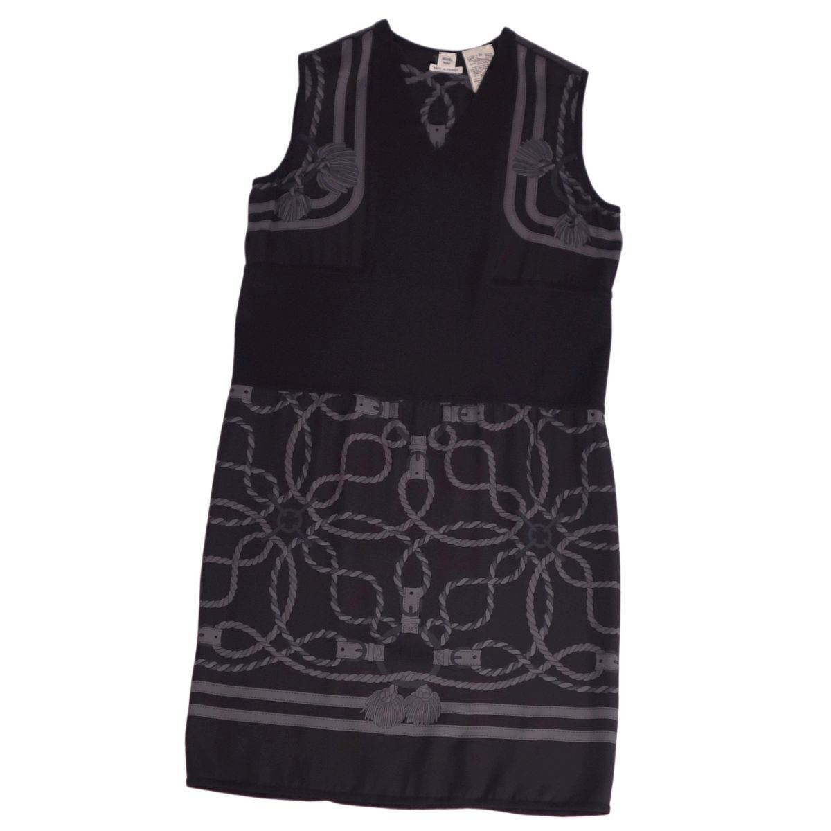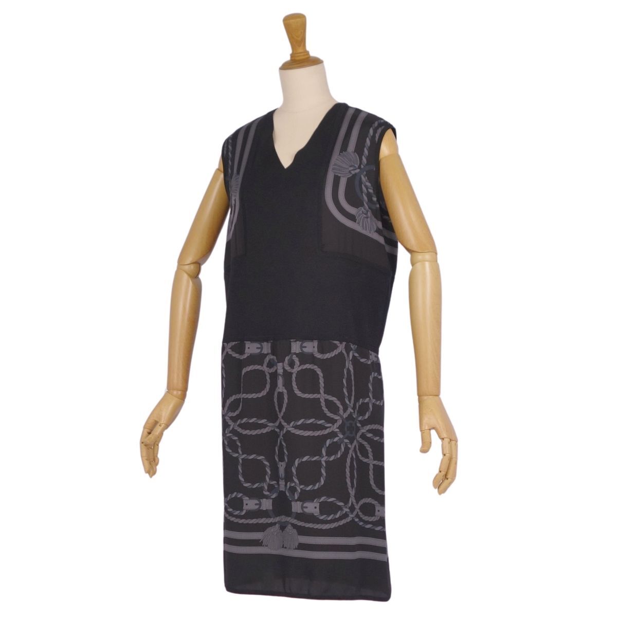 | 極美品 エルメス HERMES ワンピース 20SS ノースリーブ ニット シルク切り替え トップス レディース 34(S相当) ブラック |