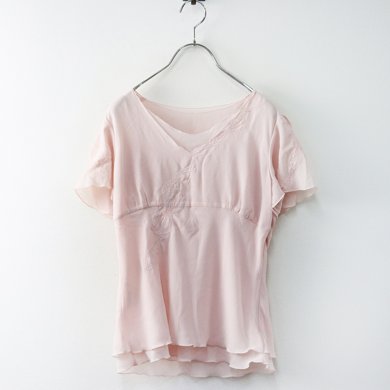 インゲボルグ INGEBORG シフォン フラワー刺繍 ブラウス スカート セットアップ S■ピンク トップス ボトムス【2400014584905】