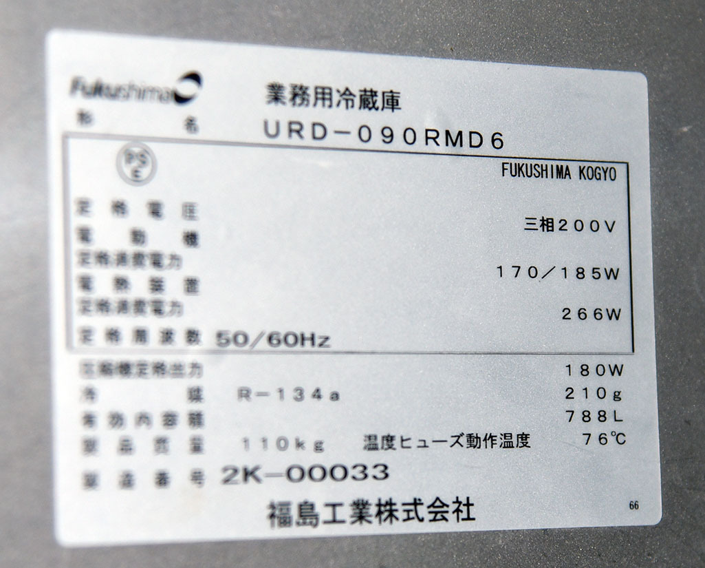 福岡~引取歓迎!フクシマ/福島 4ドア冷蔵庫 900×800×1950 URD-090RMD6 2K33