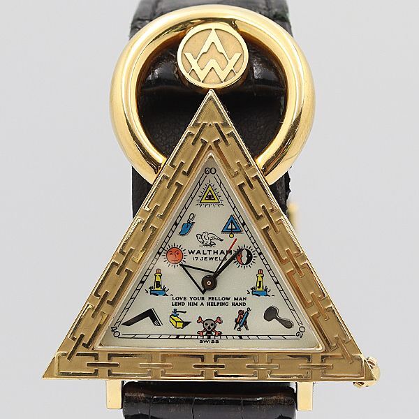 デッドストック級 稼働良品 ウォルサム フリーメイソン 96380.74 18K/750/YG トライアングル 白 手巻 メンズ腕時計NSY13202ABC3165360 8TLT