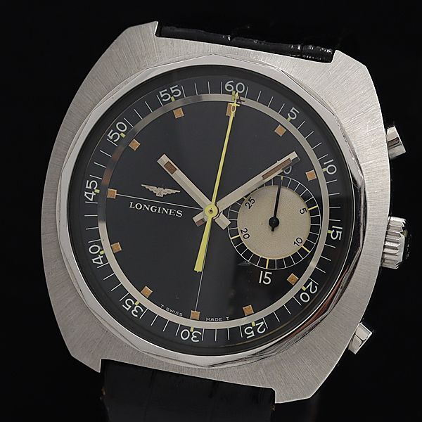 稼働 ロンジン スモセコ 黒文字盤 手巻 極上 希少アンティーク メンズ腕時計 OGH ABC5221130 デッドストック