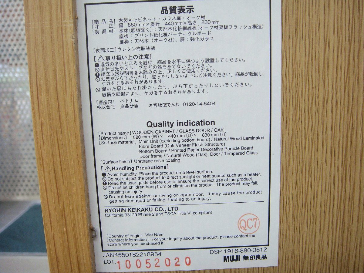 | 商品 | MUJI 無印良品 木製キャビネット ガラス扉 オーク材突板 -------------------------------------------------------------------------------- ・寸法:(約) W 880× D 440 × H 830 mm ※詳細な製品情報は、こちらをご覧下さい。 |