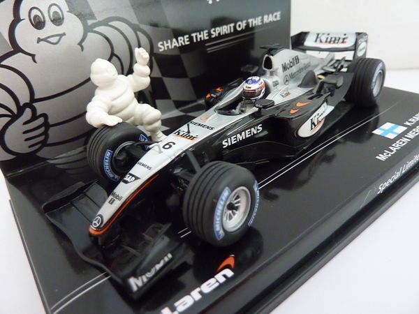 1/43スケールのミニチャンプス(PMA)製ダイキャストモデル。限定816個。ミシュラン別注シリーズ4年目のものです。製造上の多少のデカールの曲がり・シワ・浮き・傷・カケ、塗装の汚れ・傷、パーツの取り付けの曲がりなどはご理解ください。リアウイング背面下部のデカールに浮き、シワまたは傷が見られます。ボディの塗装 に荒れ、曇りなど見られます。ミラー、アンテナ類、リアウイング下のフックの取り付けに若干曲がりがあります。細かいゴミ・汚れの付着が多少あります。ケースにスリーブ(紙カバー)と擦れてできたものなど、多少擦り傷があります。スリーブ(紙カバー)に汚れ・擦り傷・シワなどのいたみが多少あります。ご了承ください。