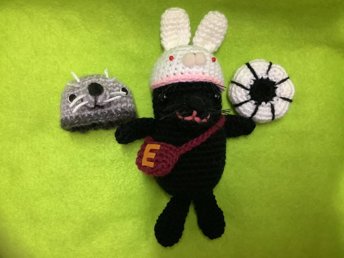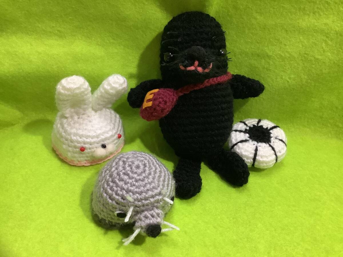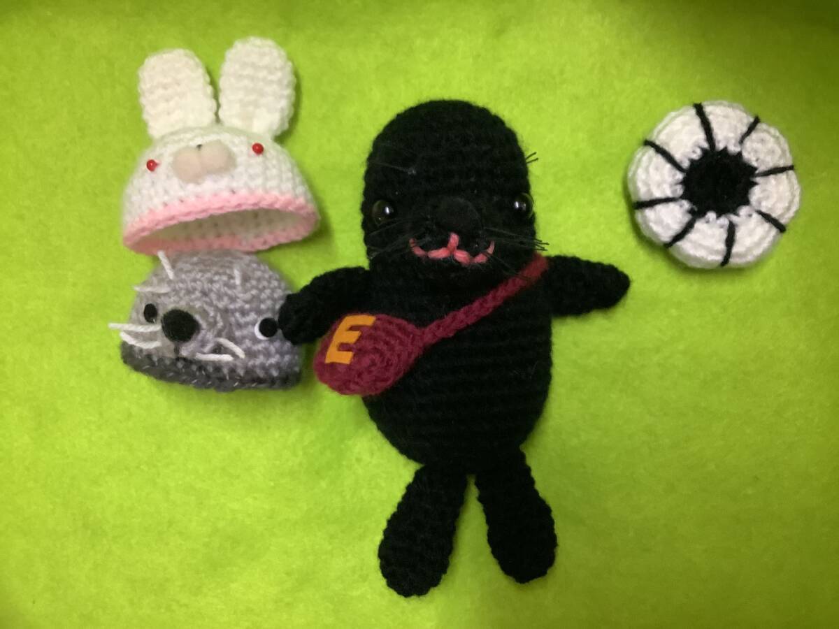 ハンドメイド、手編みのハイイロアザラシあみぐるみ