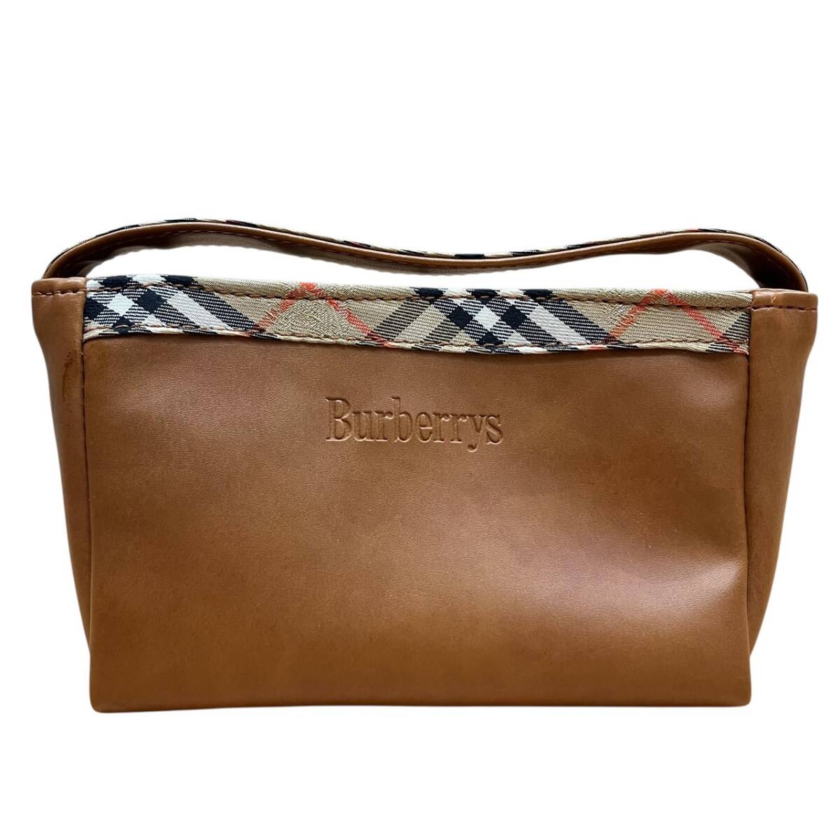 BURBERRY バーバリー ポーチ ブラウン系 レザー ハンドバッグ ノバチェック |