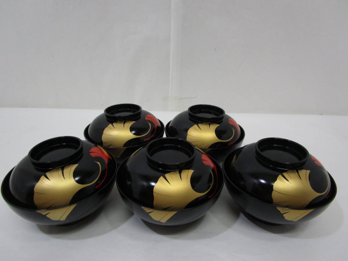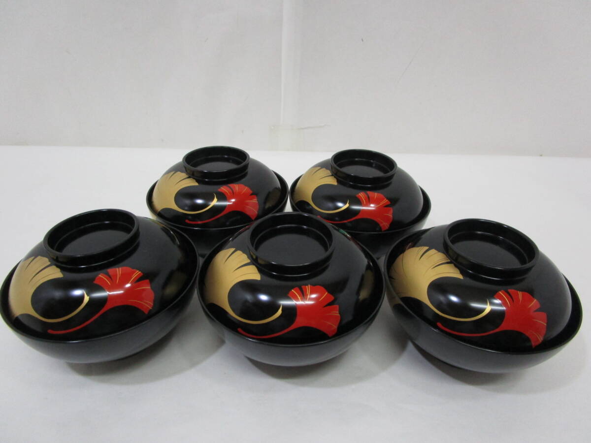 『木質樹脂』銀杏蒔絵 煮物椀 五客