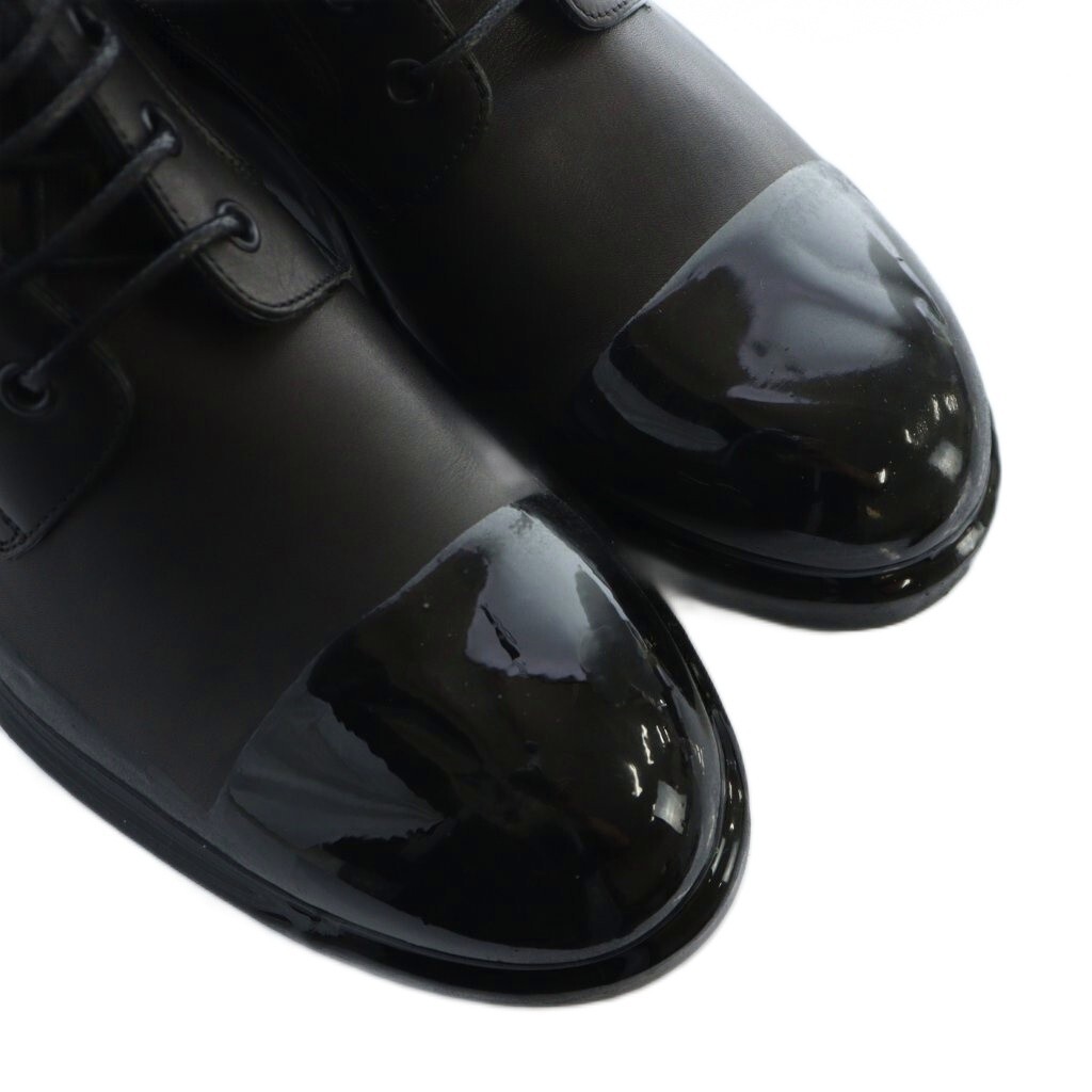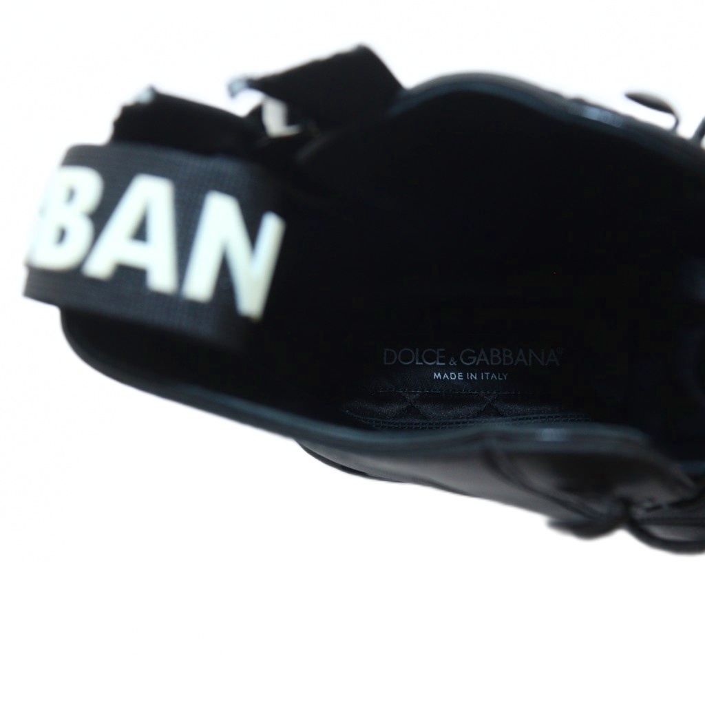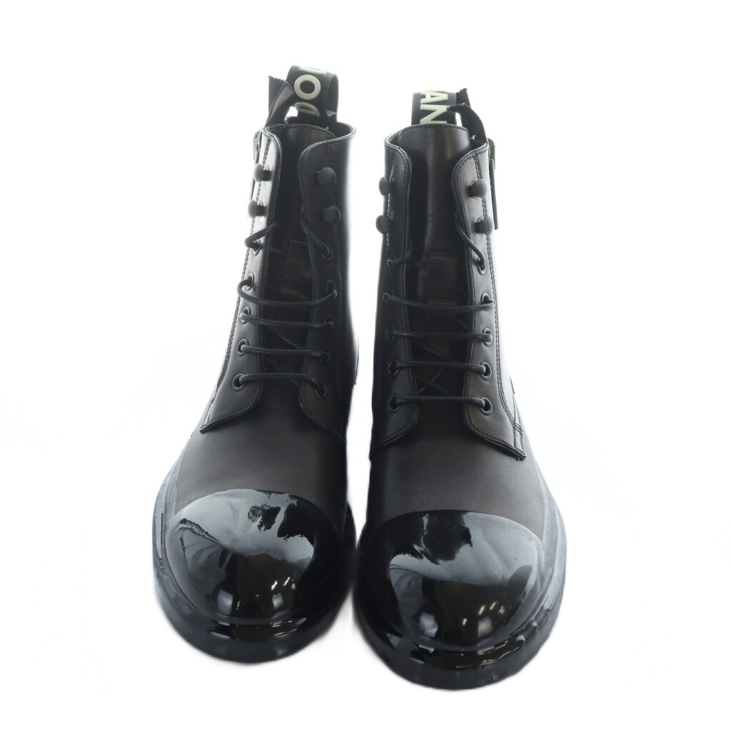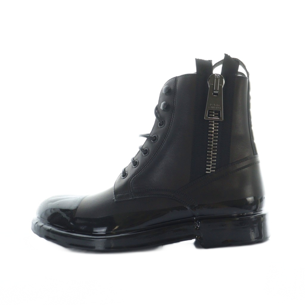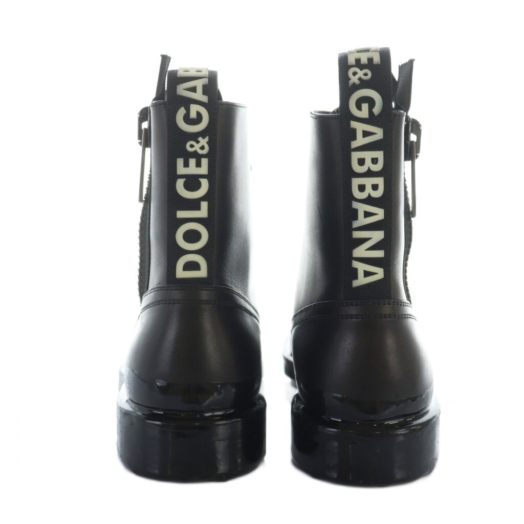ドルチェ&ガッバーナ ドルガバ DOLCE&GABBANA 19SS ショートブーツ サイドジップ パテントレザー コンビ 切替 ロゴ 6 25cm 黒