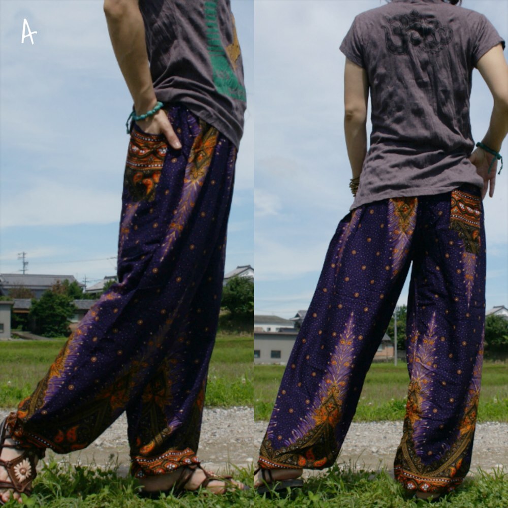 ★エスニック アラジンパンツ ピーコック送料込★新品A★アジアン サルエル ヨガ ユニセックス ルームウエア ハーレムパンツ