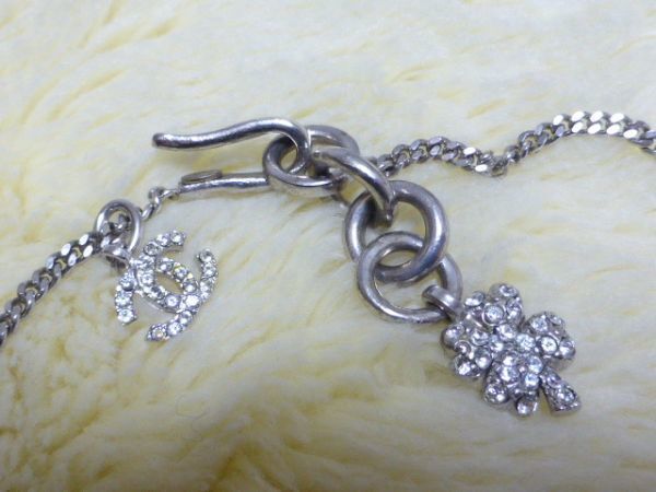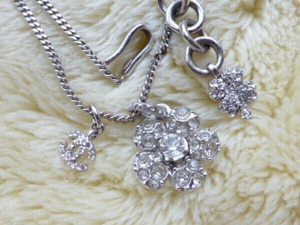 ☆送料無料☆CHANEL シャネル カメリア&COCOラインストーントップ クローバーチャーム ネックレス(USED)