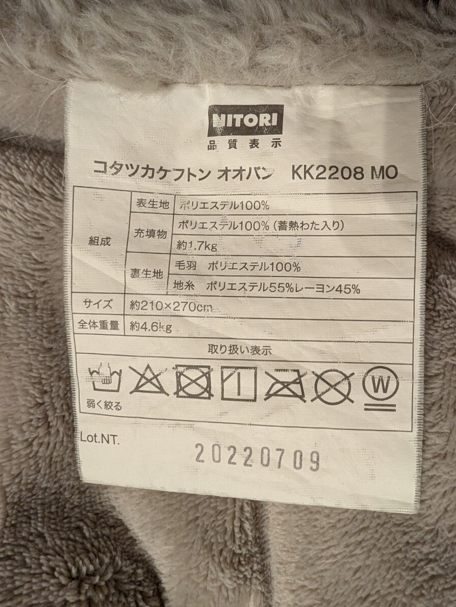 大型洗濯乾燥機で洗濯後、もう一度乾燥機にかけました。