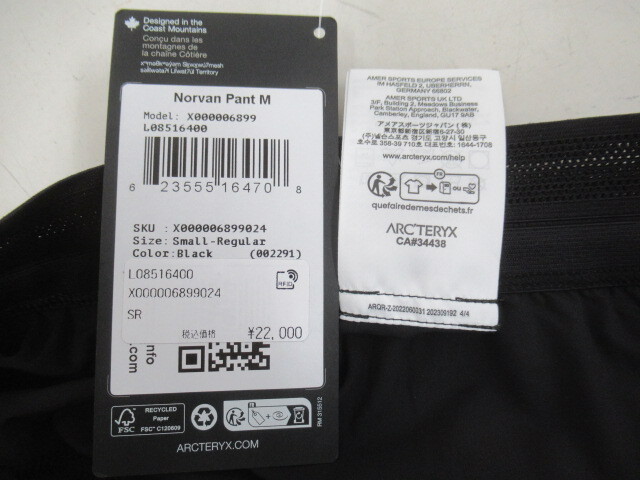【美品】ARC'TERYX ノーバンパンツ 登山 X000006899 アウトドアウェア 039041019