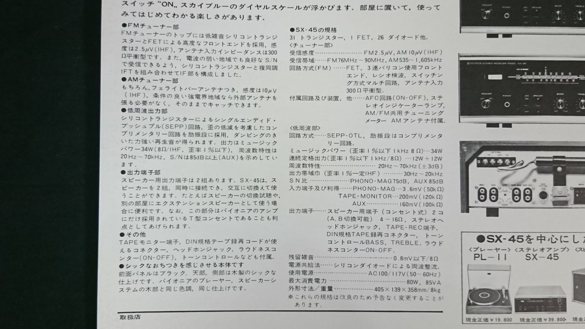 | 【昭和レトロ】『PIONEER(パイオニア) ソリッドステート 総合アンプ SX-45 カタログ』1970年頃 パイオニア株式会社 | |