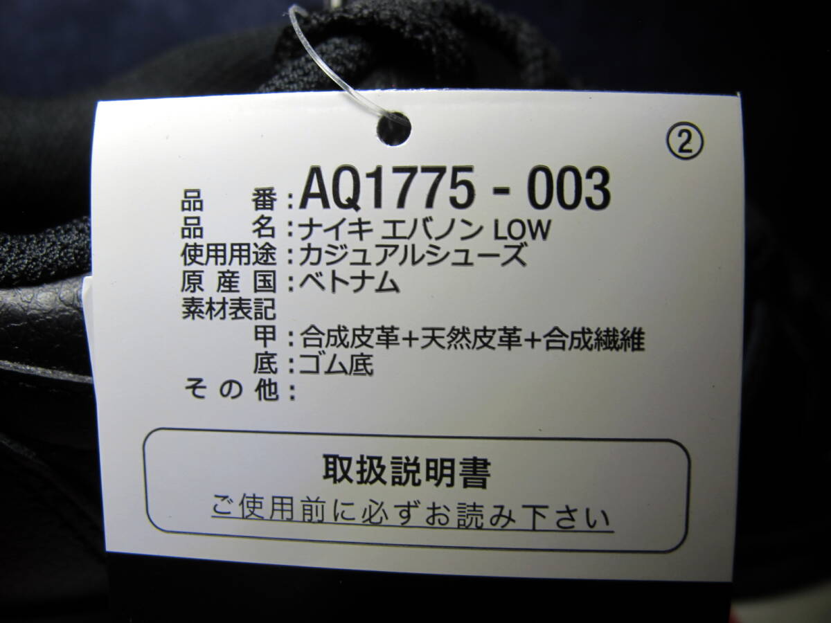 ラス1 新品 箱有 NIKE EBERNON LOW / エバノン ロー 26.0cm オールブラック AQ1775-003 天然皮革 US8 通勤にも