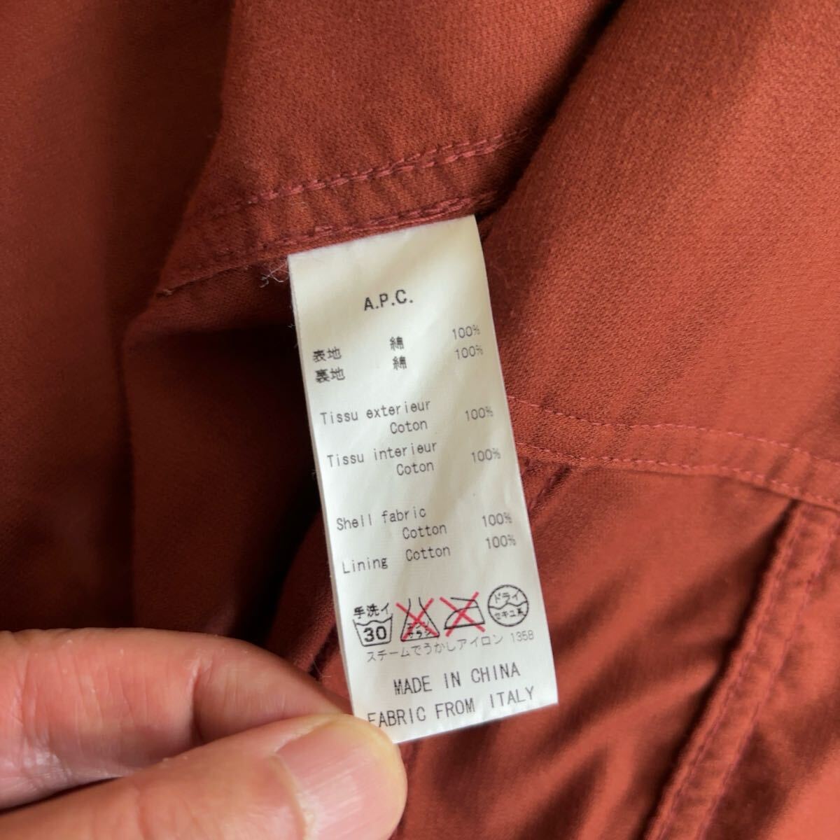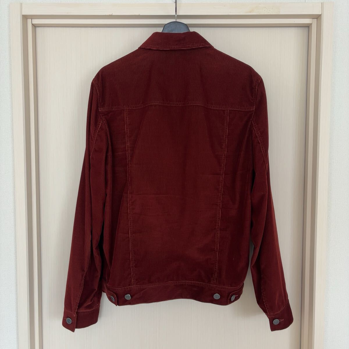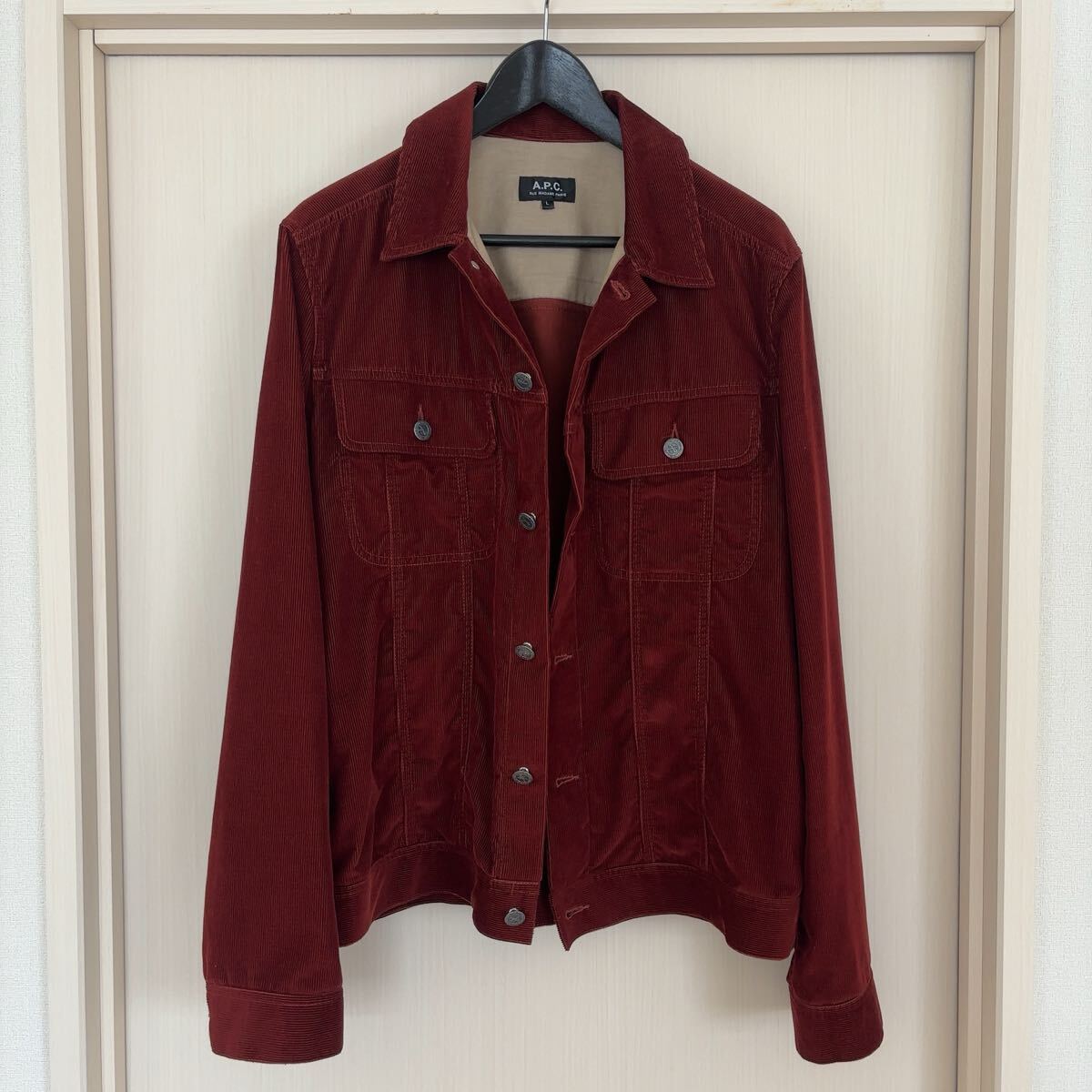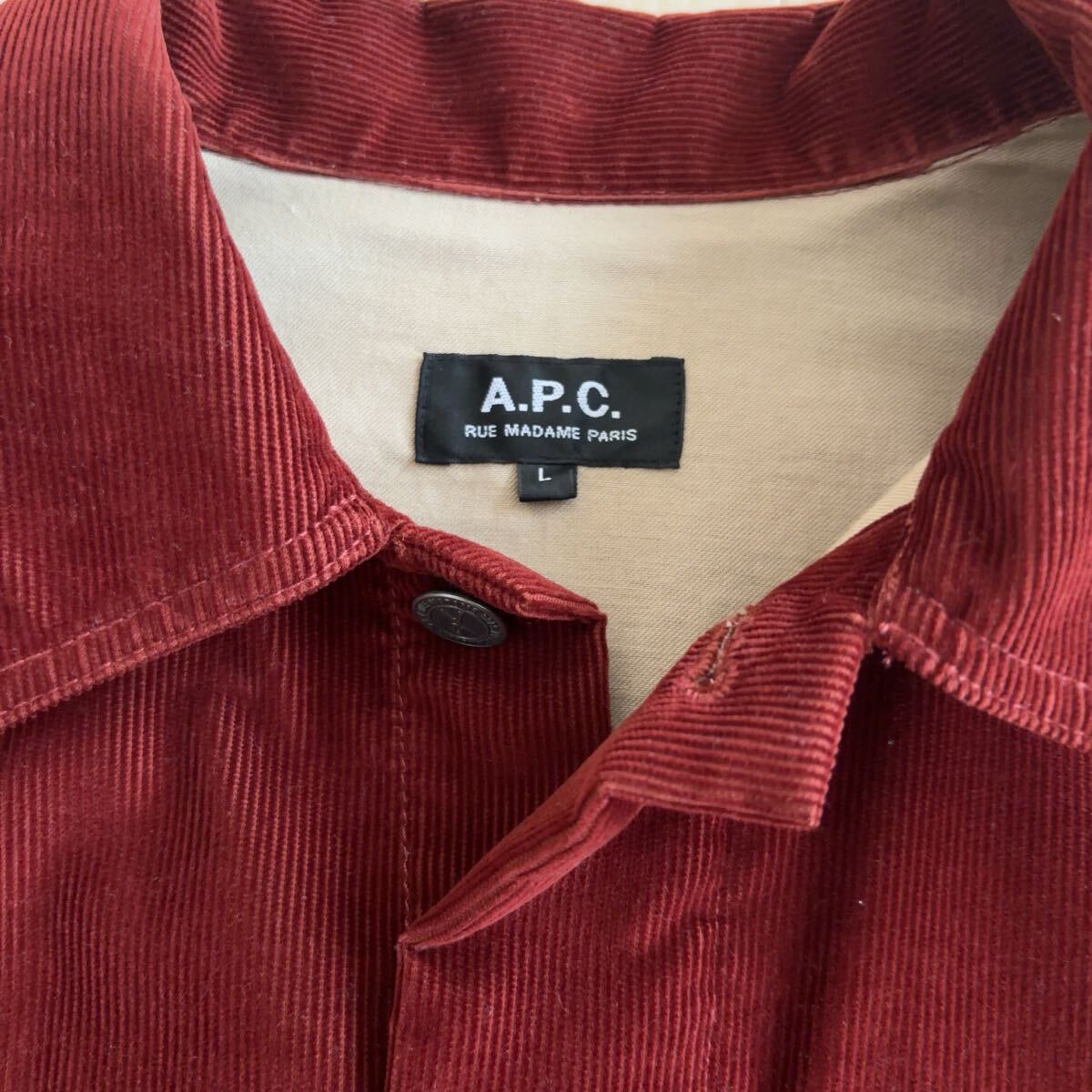 A.P.C.のコーデュロイジャケット、サイズ表記はL、お色はボルドーです。