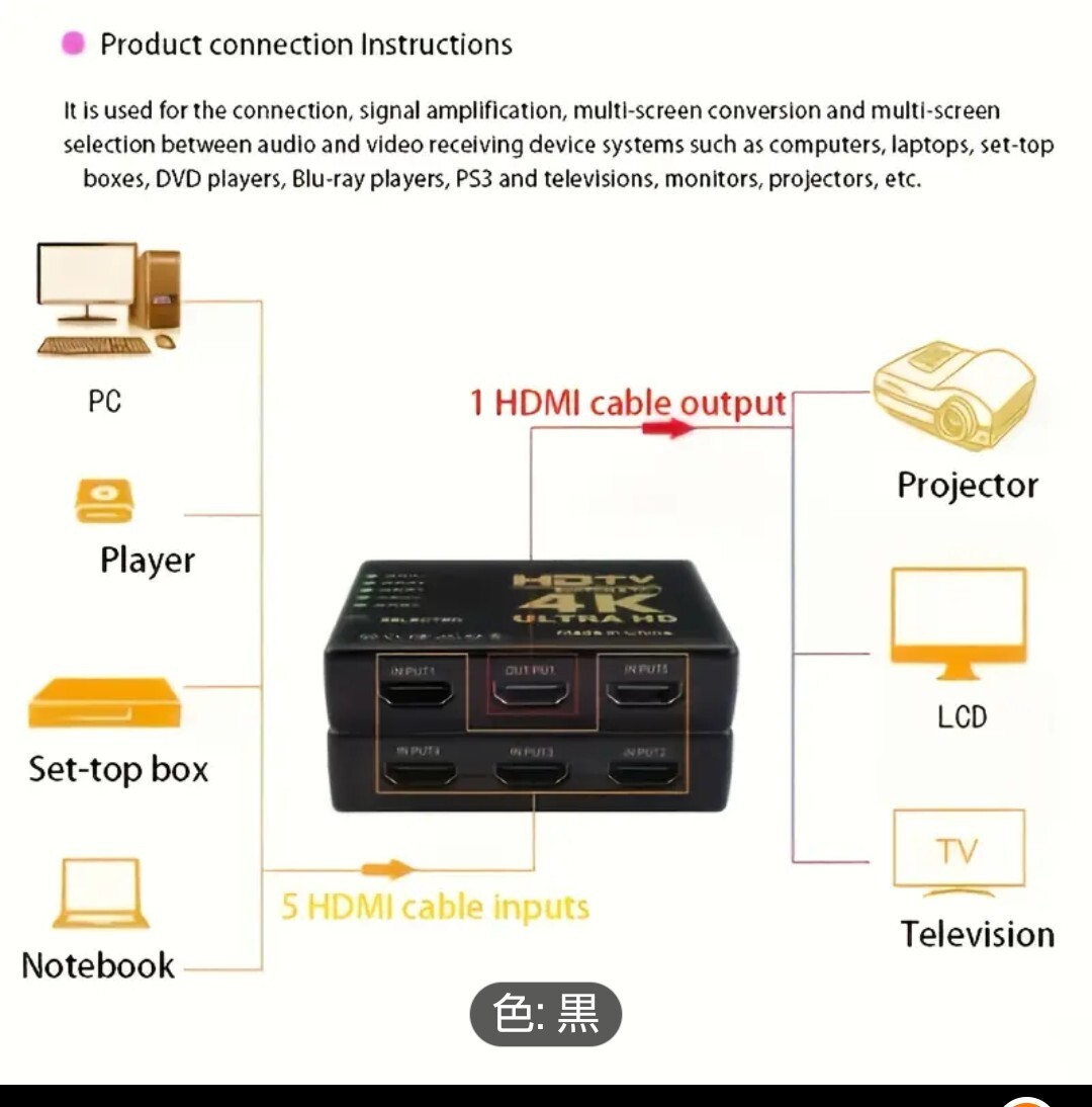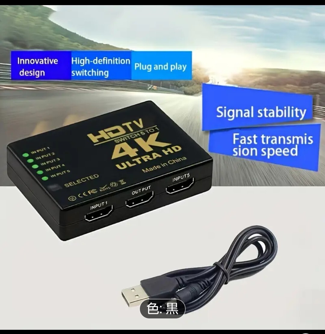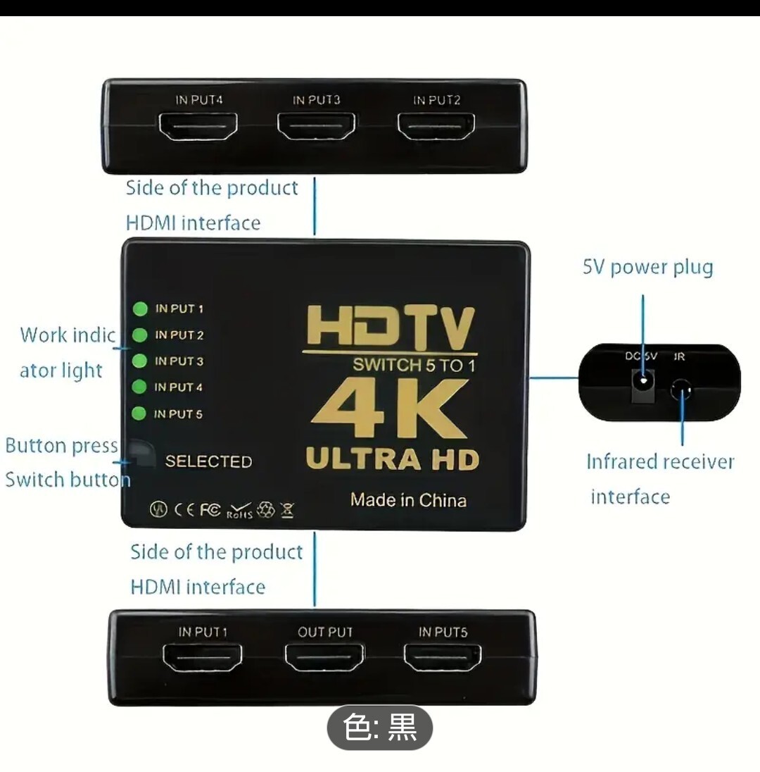 4KウルトラHD対応5-in-1HDTVスイッチャー、5-in-1出力&1-in-1コンバーター、USB給電式ホームシアターやゲーム機、ストリーミング用HDTVスイッチャー - 4K/HD入力対応、TV・モニター・プロジェクターに適合 - ゲーム、プレゼンテーション、ホームエンターテイメントに最適、デュアルモニターハットビデオツール、モダンガジェット、高品質構造、テック愛好家向け、ゲーミングセットアップ、耐久性のある構造、オフィスプロフェッショナル向け
