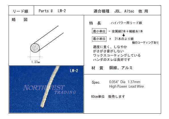 30㎝・38㎝スピーカー用リード線 パイパワー用 60㎝ 補修用パーツ 1,020円(送料込)#LW2