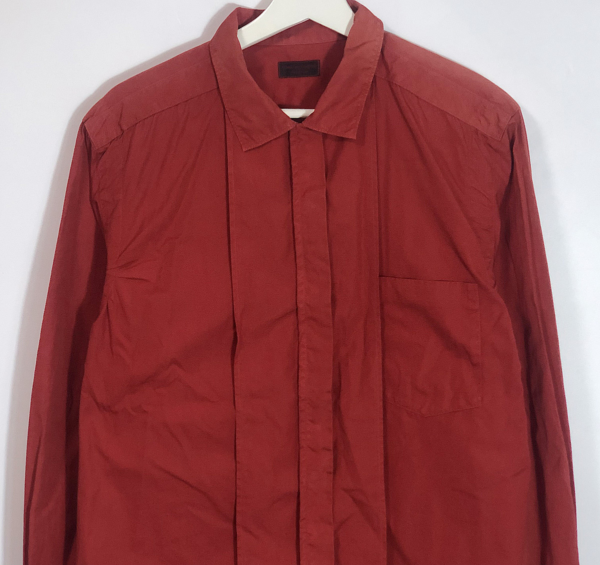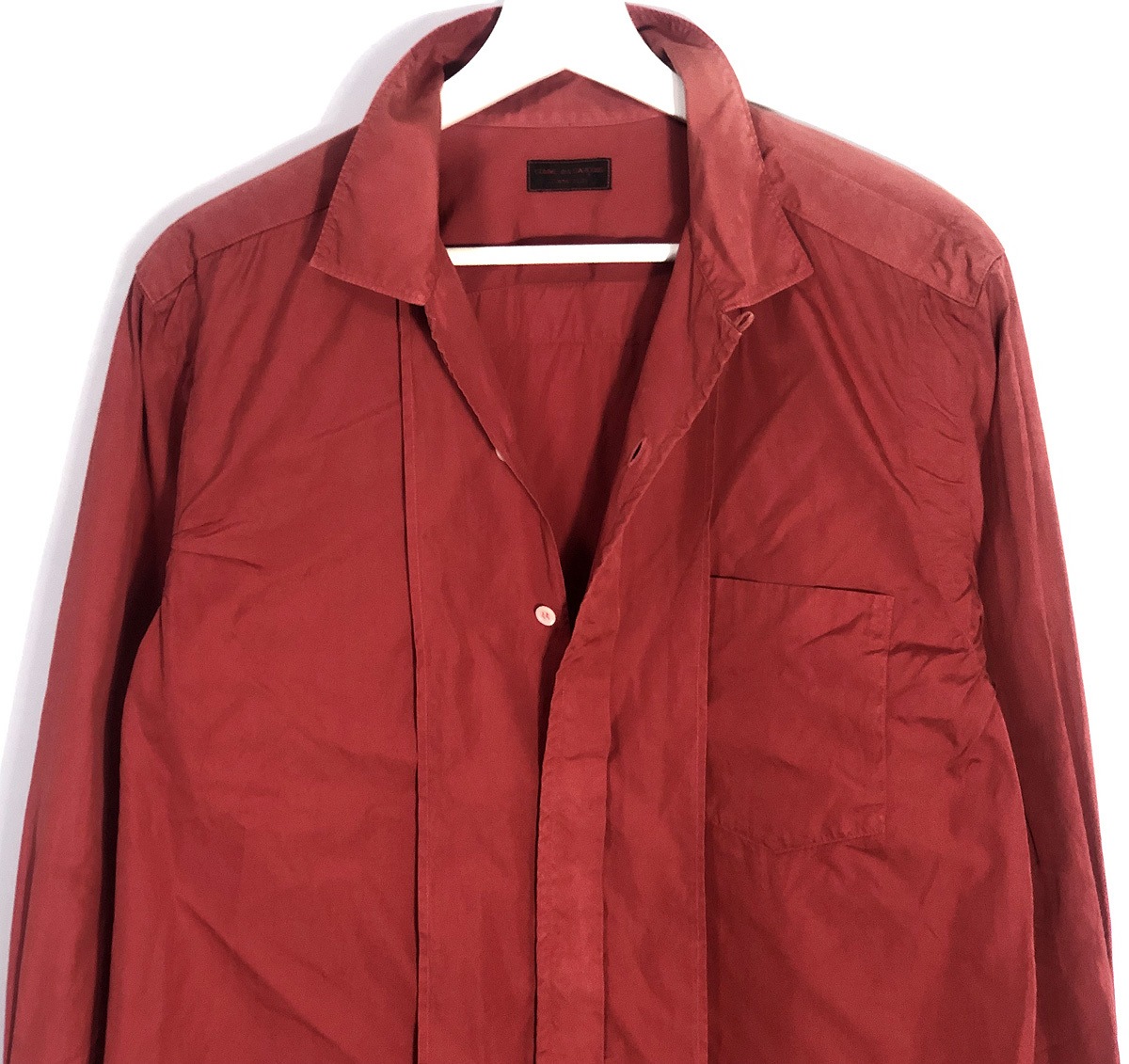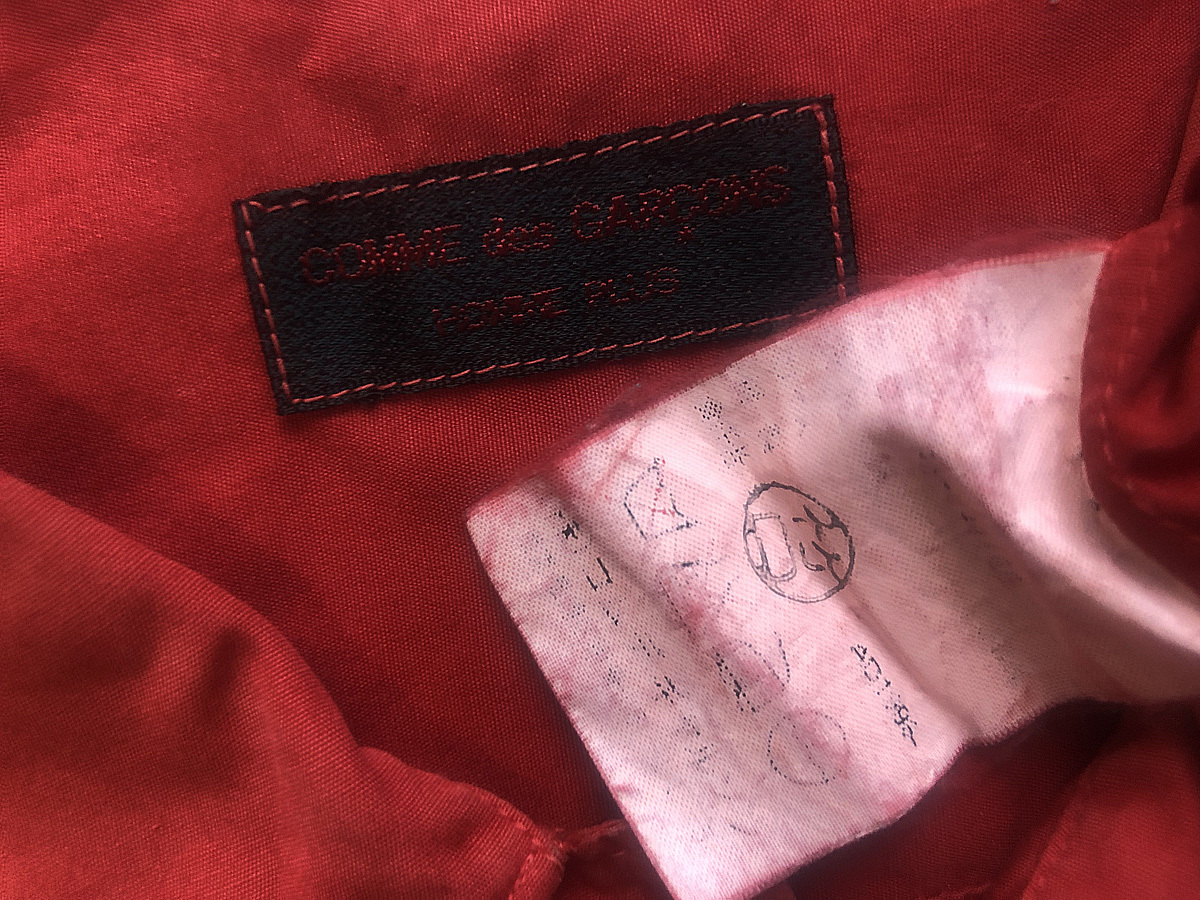 This is a rare vintage■1996 Spring/Summer mod-era Comme des Garons Homme Plus dress shirt with a garment-dyed design and chin strap.