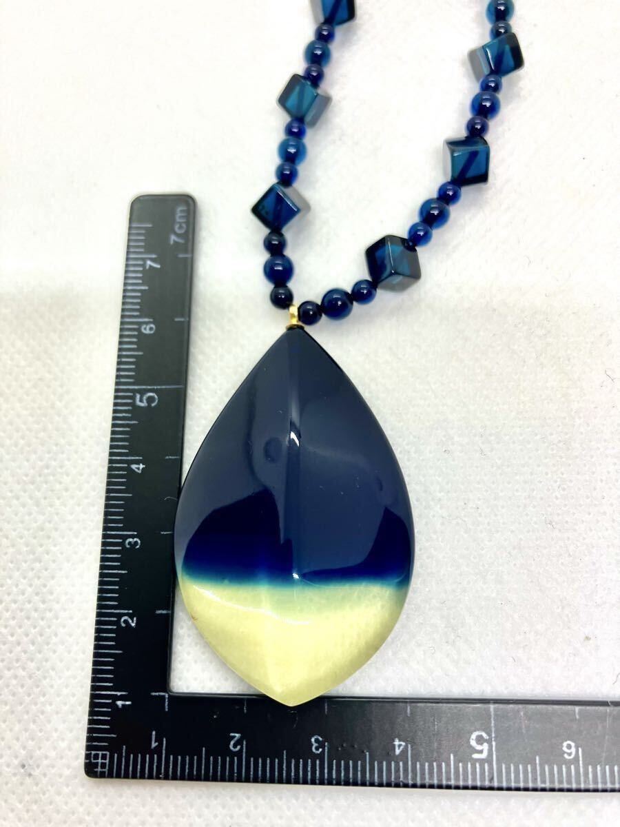 ネックレス部分も、全てブルー琥珀を使用しています。