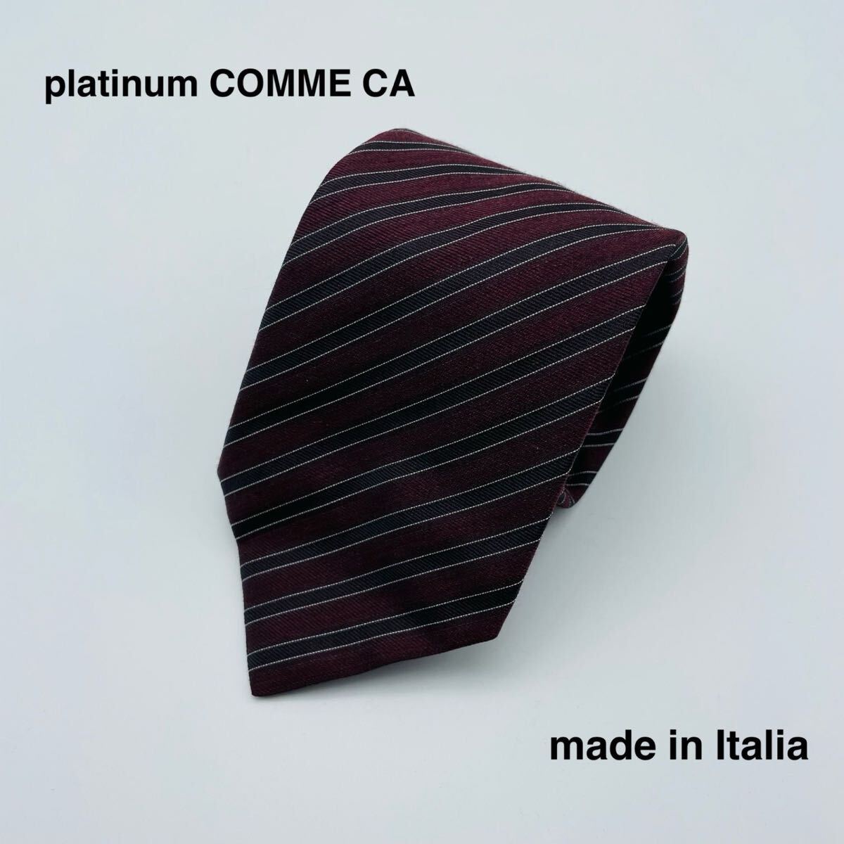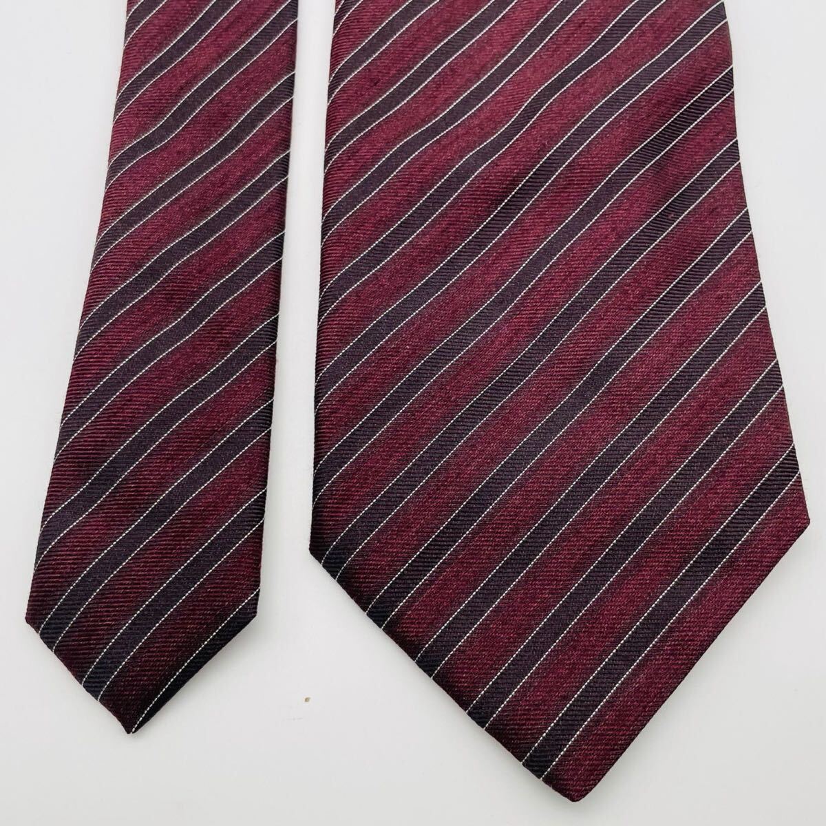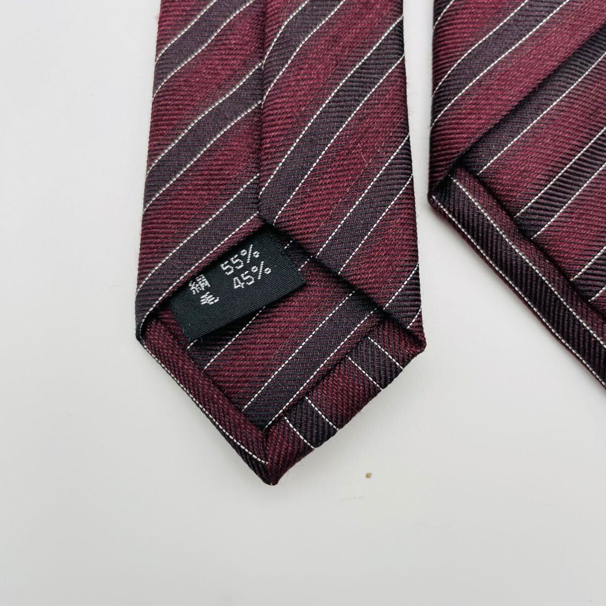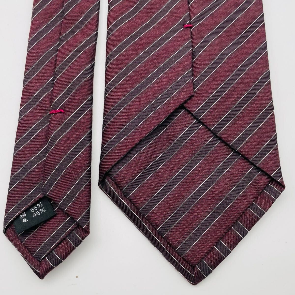 バーガンディのストライプデザインのネクタイ、イタリア製。