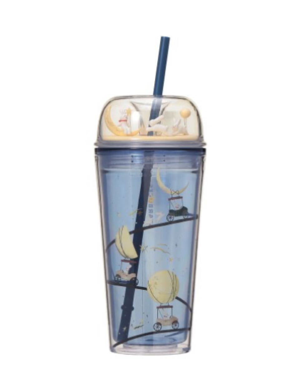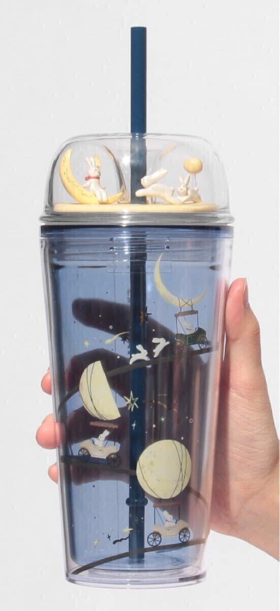 「中秋の名月」の時期に合わせ、温かさと豊かさの象徴である三日月を運ぶウサギたちの旅をテーマにデザイン。リッド部分には立体的なフィギュアを、夜空をイメージしたネイビーのコールドカップタンブラーです。