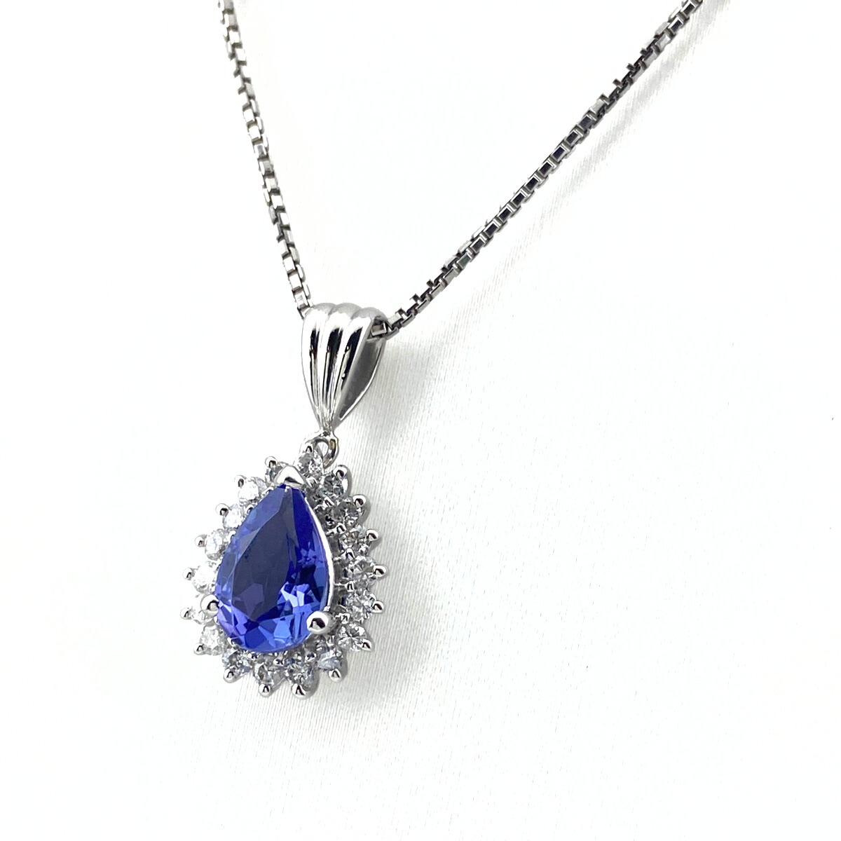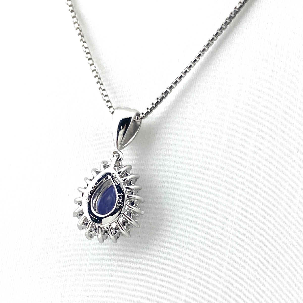 トップ:Pt900、チェーン:Pt850 タンザナイト:1.26ct、メレダイヤ:0.38ct 中古品の為、若干のキズや汚れ、タンザナイトにキズやカケがございます。 |