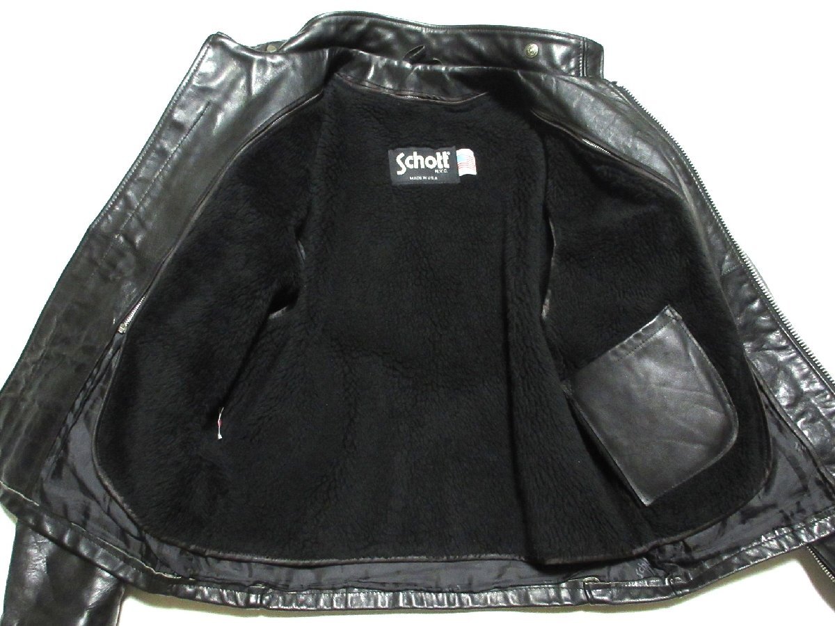 オイルドカウハイド/Schott .N.Y.C 141 ショット レザー シングル ライダース/40/ブラック/スタンドカラー/ライナー付き/USA/アメリカ/米国製