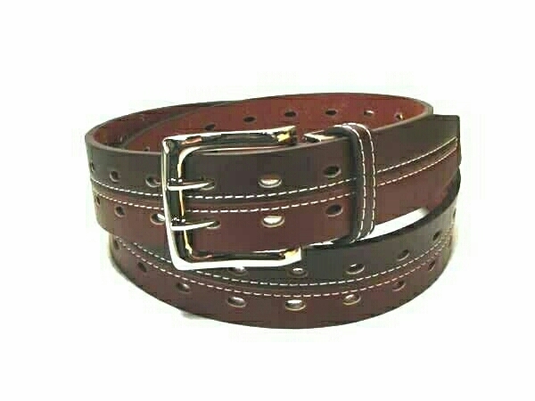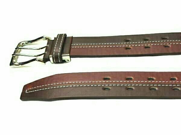 牛革使用 ダブルピン レザーベルト ブラウン 2トーンカラー エンドレスピンホール 男女兼用 フリーサイズ ◆新品未使用◆アウトレット◆