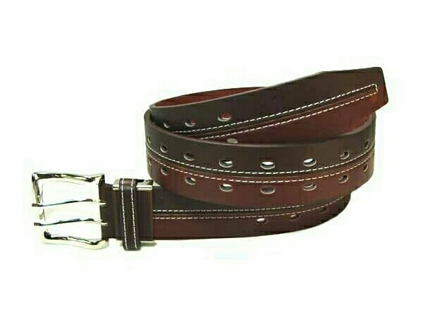 ダブルピンバックル仕様エンドレスピンホールのブラウン2トーンカラーレザーベルトです。