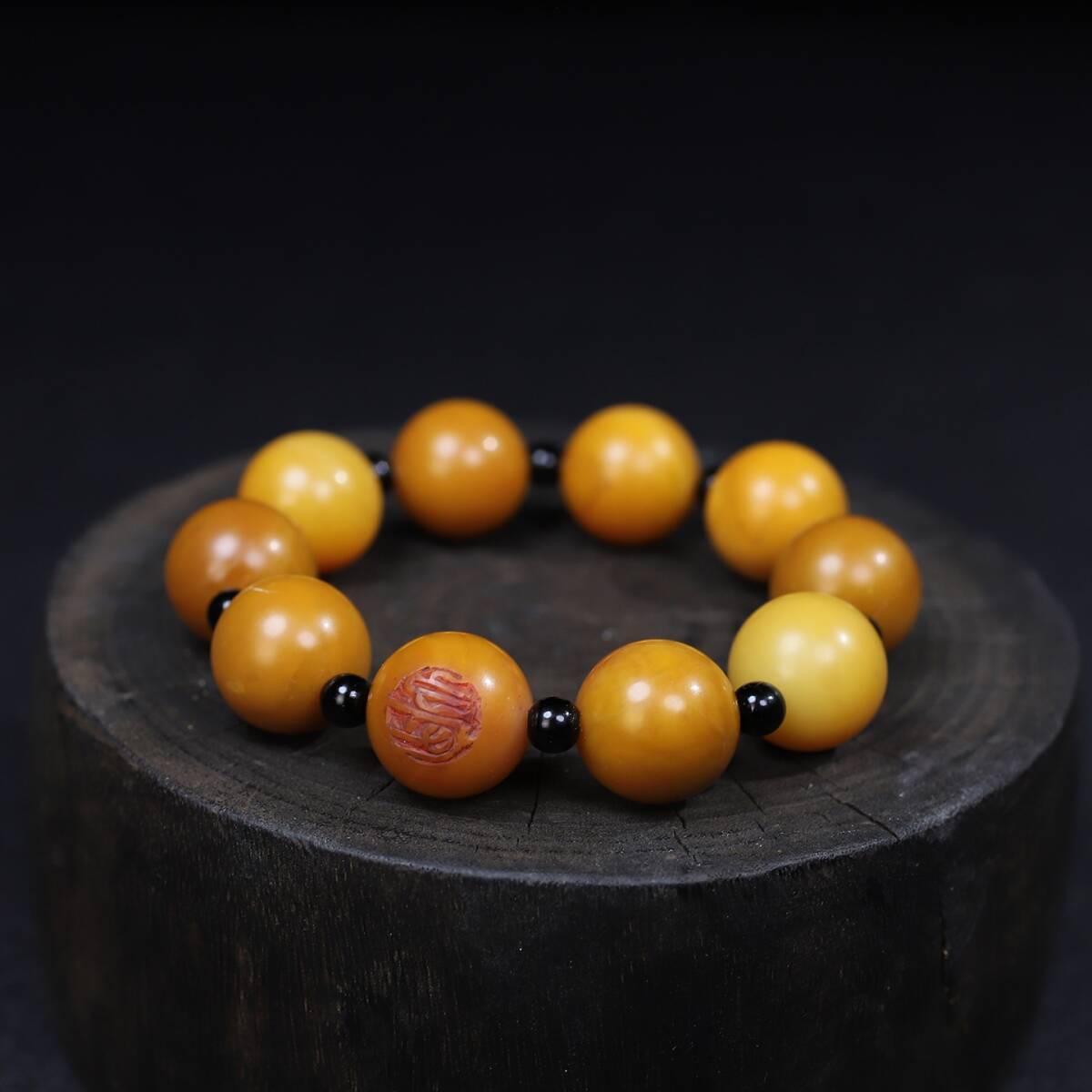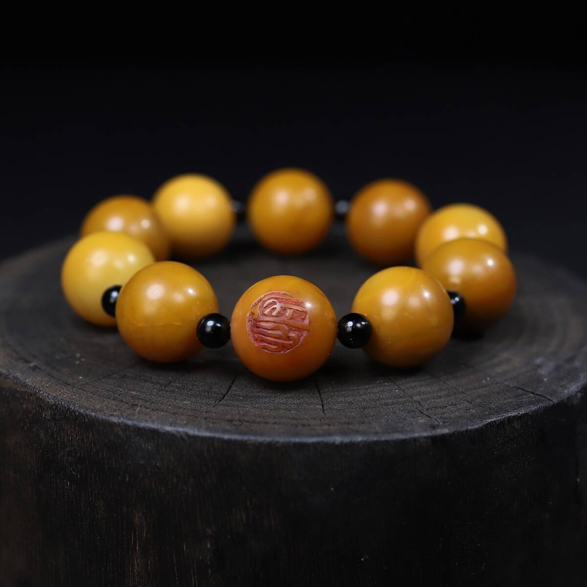 唐物 清 寿山石 シード料 圓珠手鏈一條 天然石 極細工 中国古玩 骨董品 古美味 D69