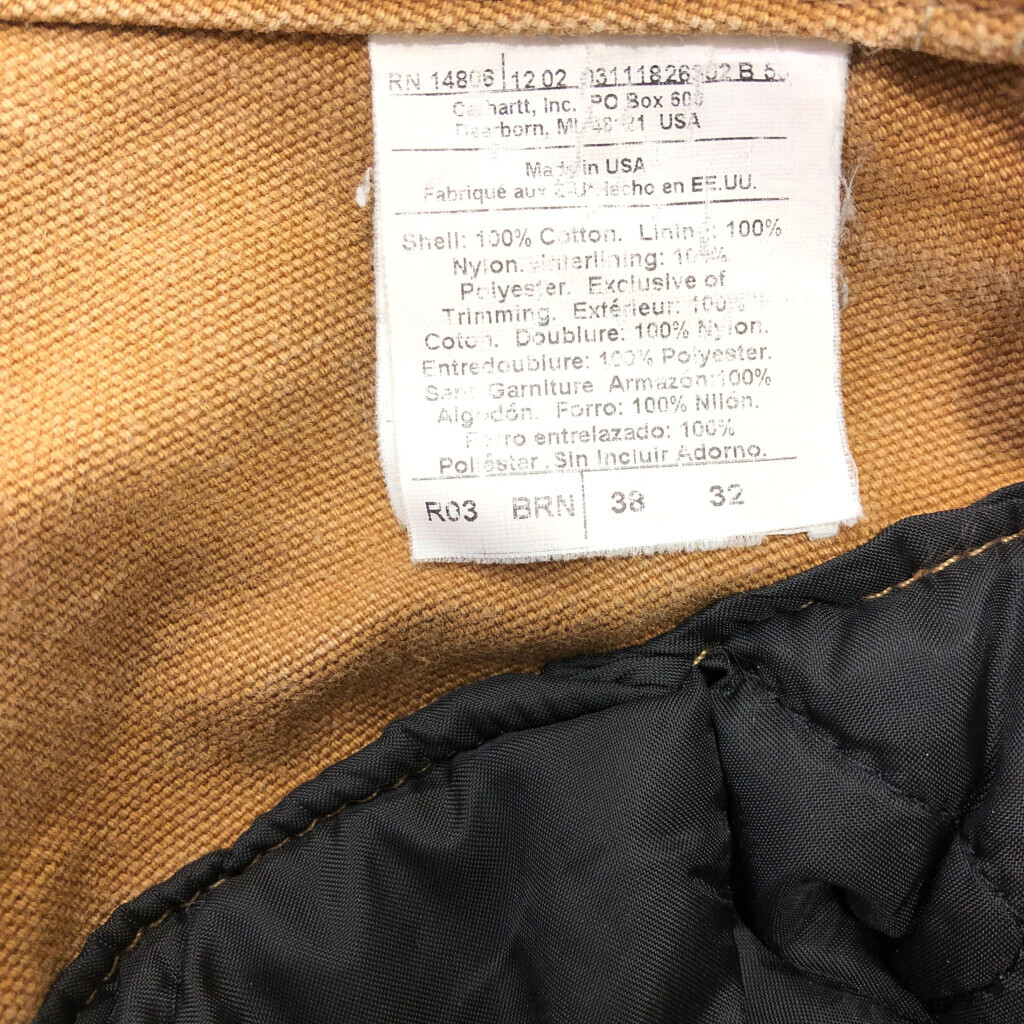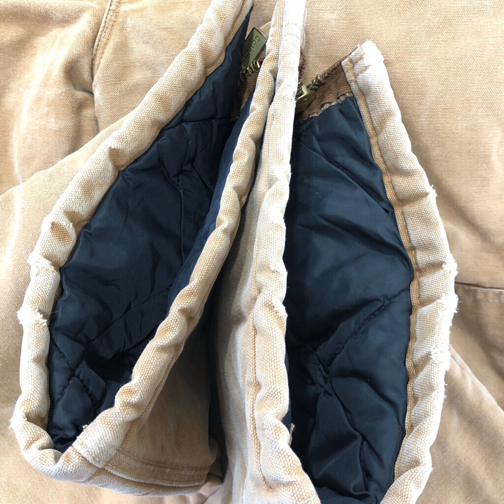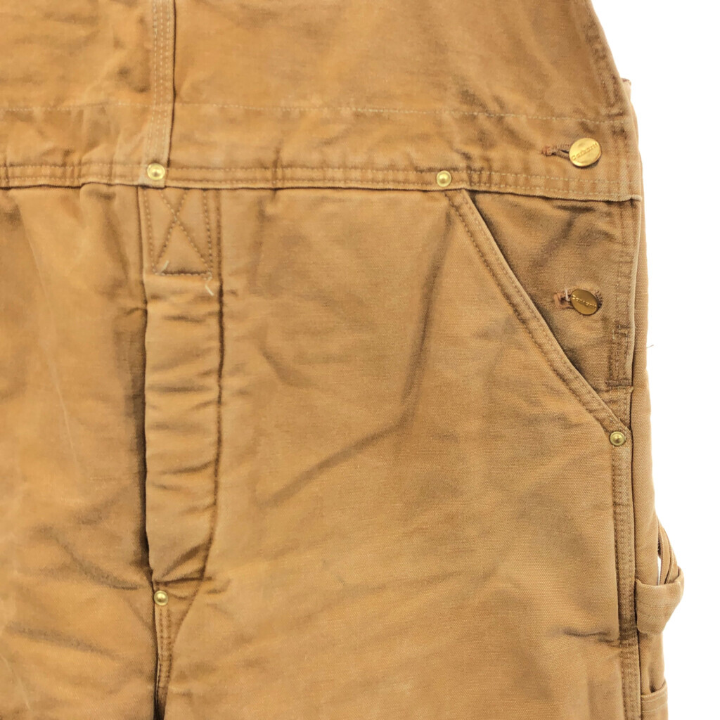 【商品管理番号】 Q5237 【ブランド】 Carhartt/カーハート 【サイズ】 W38 L32 【実寸サイズ】 総丈:約159cm ウエスト:約106cm 股上:約38cm 股下:約77cm わたり幅:約33cm 裾幅:約27cm 【主な素材】 表地 : コットン 裏地 : 13848 【色】 ライトブラウン 【仕様】 生産国 : USA製 00年代 大きいサイズ、ワーク ダック ダブルニー ダック ダブルニー ビブオーバーオール 【状態】 汚れ:もも、ひざ、スネ キズ:裾 特記事項:使用感あり、色褪せ |