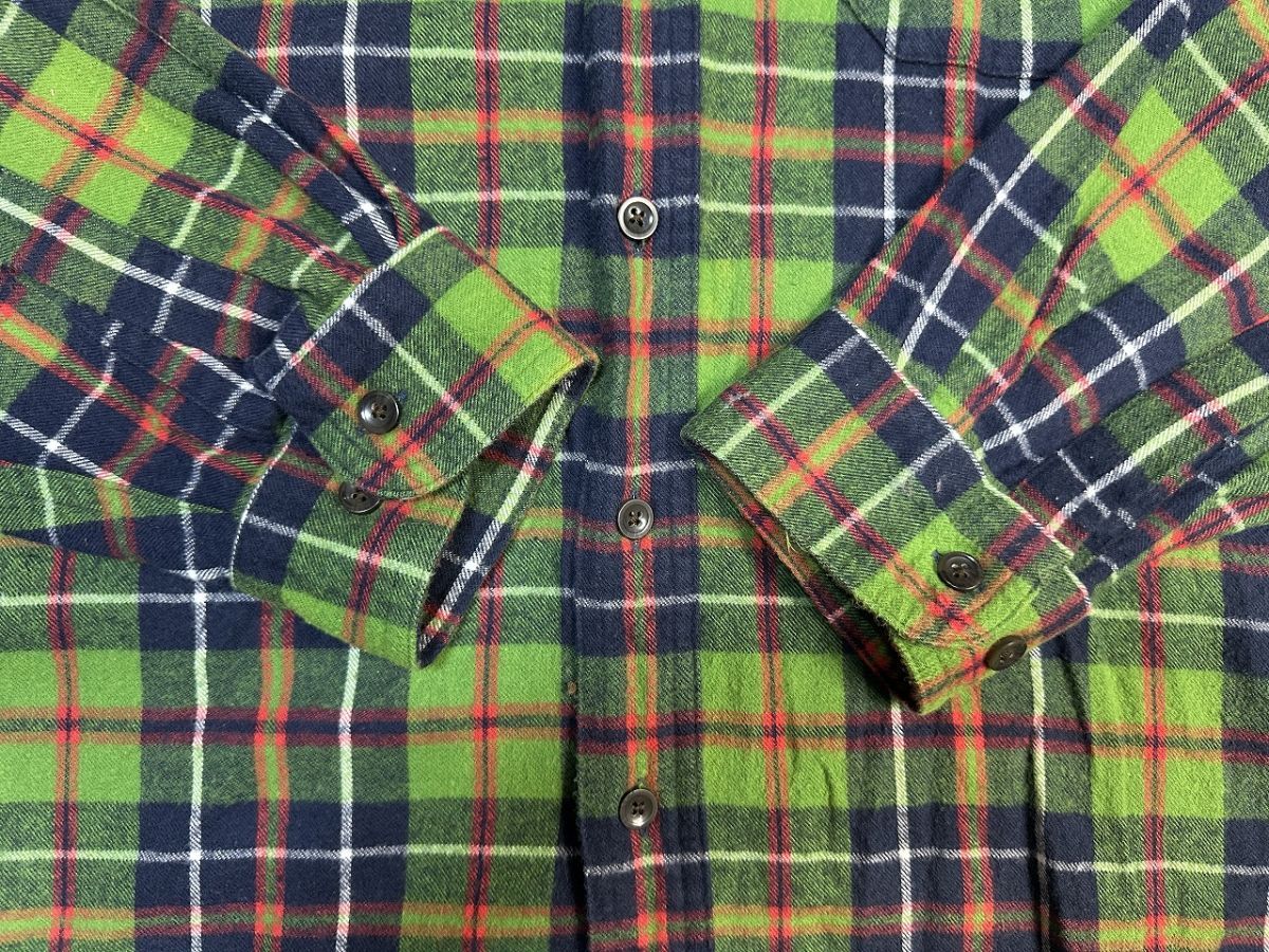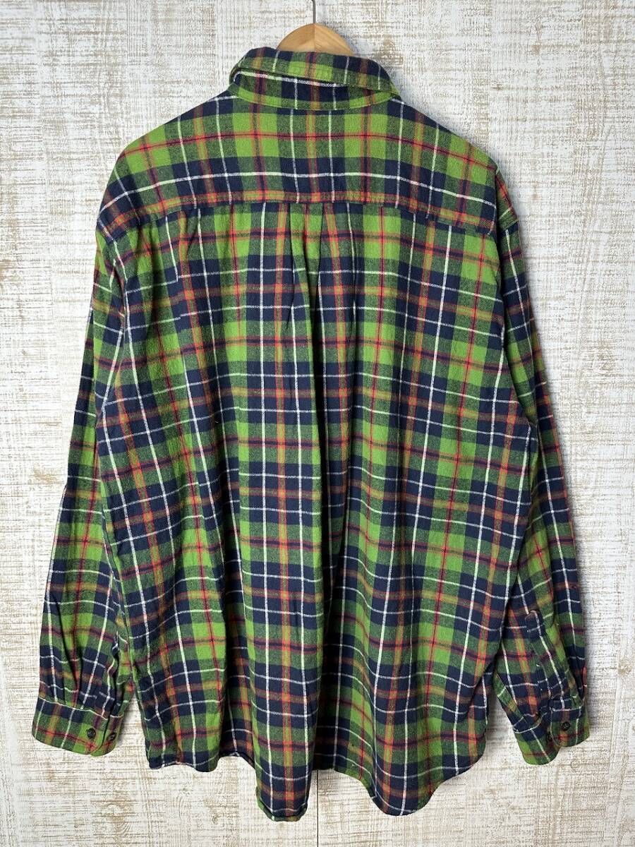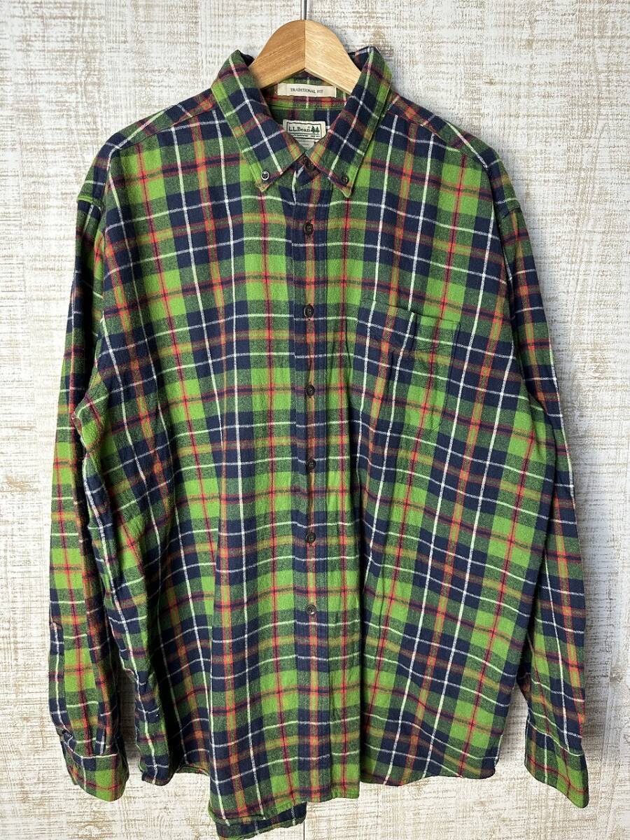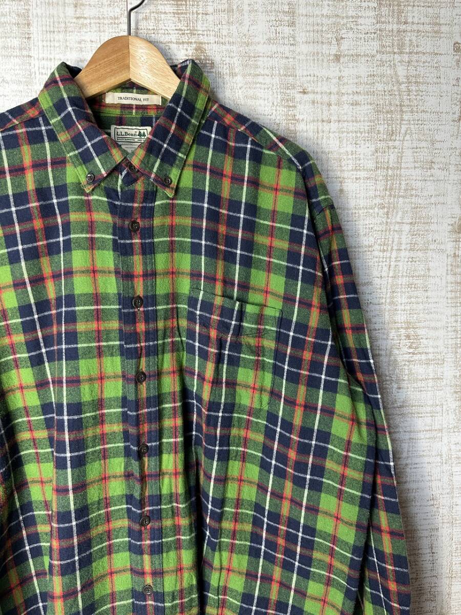 ●US USED ビッグサイズ US古着 L.L.Baen エルエルビーン ネルシャツ チェック柄 長袖 シャツ グリーン緑×ネイビー紺×レッド赤【XL】