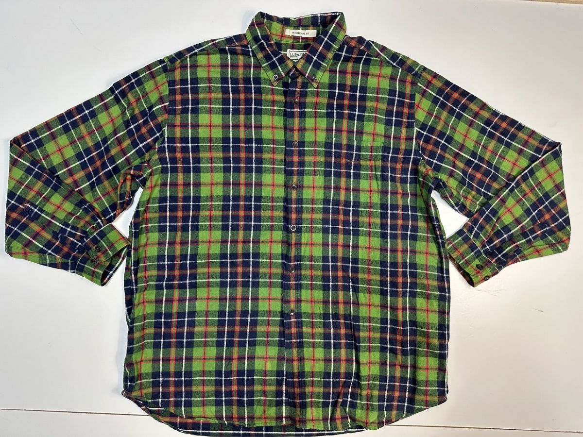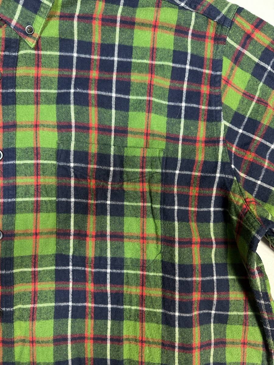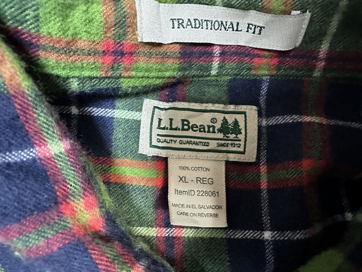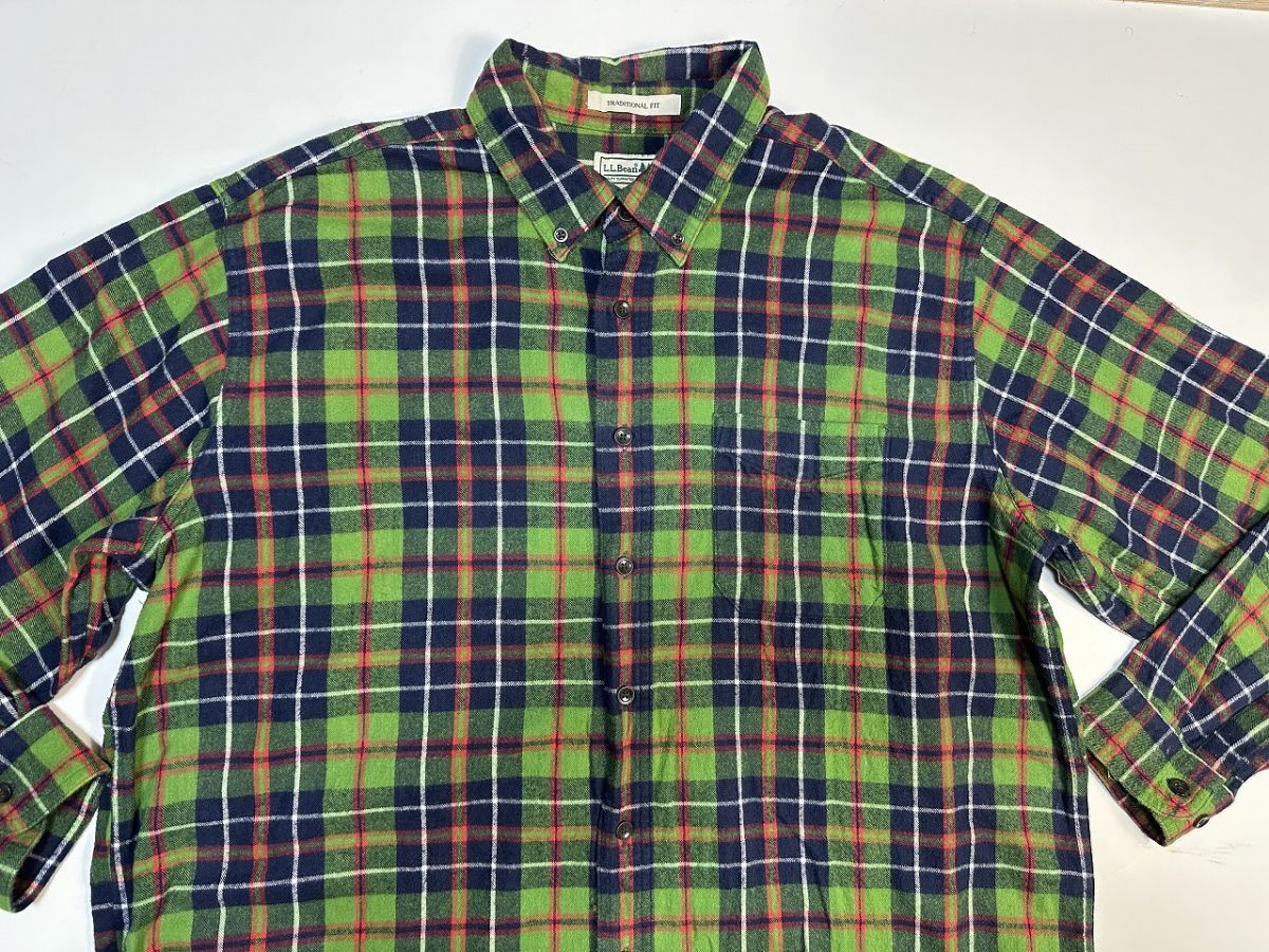 ●US USED ビッグサイズ US古着 L.L.Baen エルエルビーン ネルシャツ チェック柄 長袖 シャツ グリーン緑×ネイビー紺×レッド赤【XL】