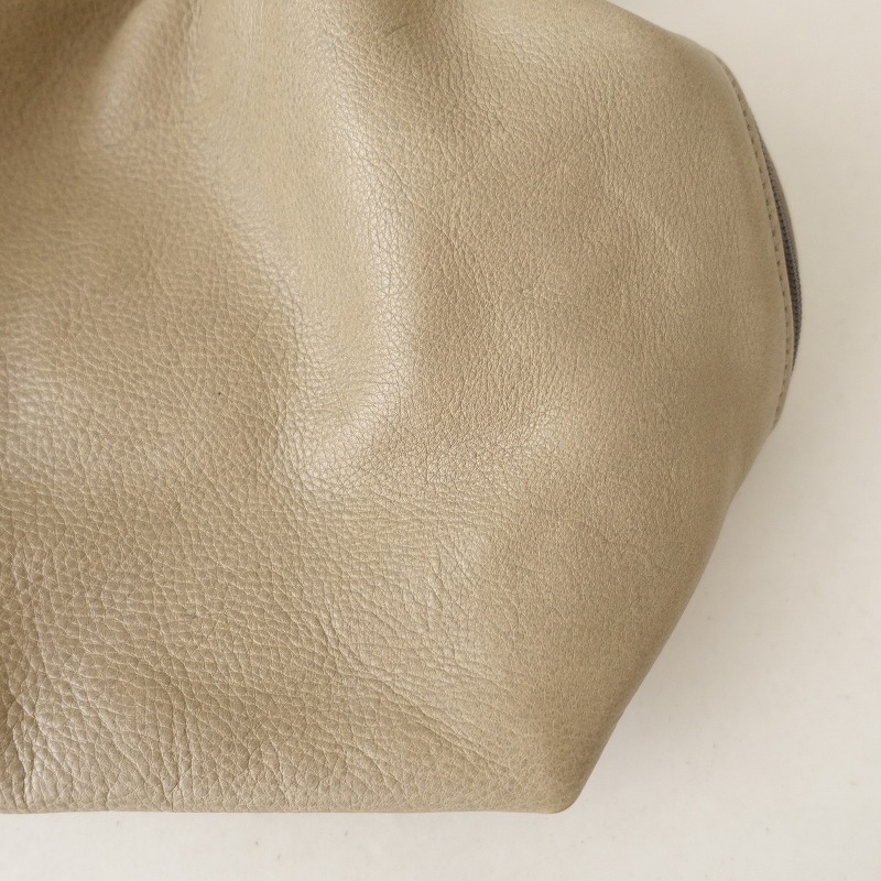 | JURGEN LEHLのレザーバッグです。カラーはベージュで、開口はダブルファスナーです。内側にオープンポケットが1個ございます。 |