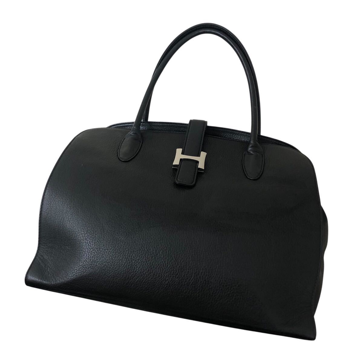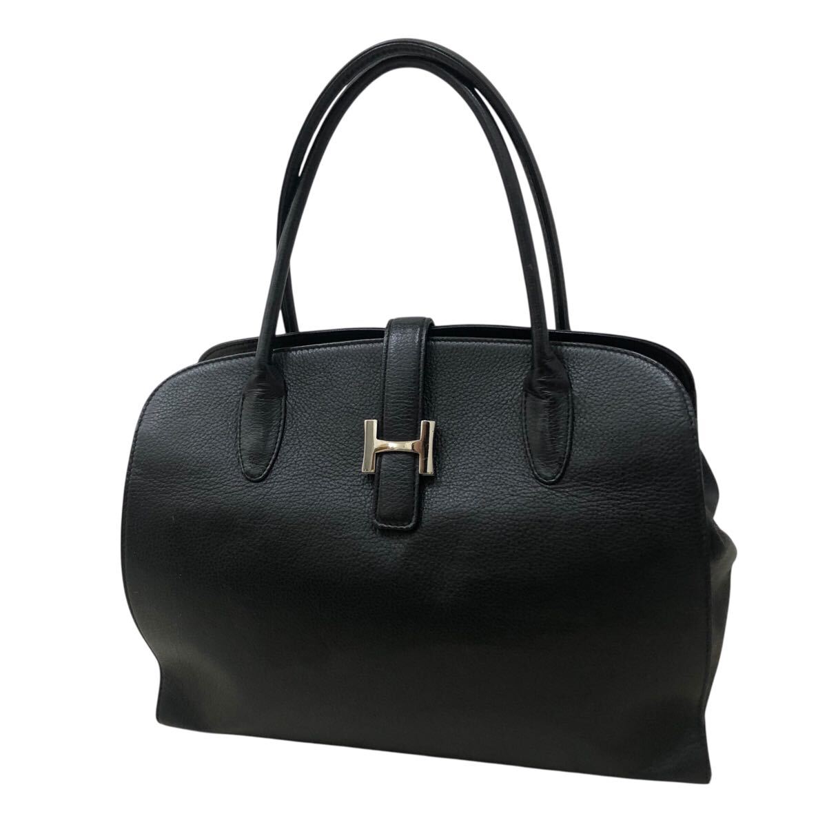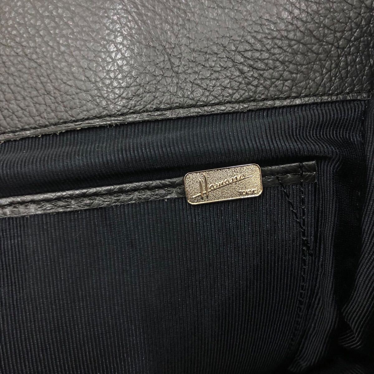 9k202-22 皇室御用達 濱野皮革工藝 ハマノ HAMANO レザー 本革 オールレザー ハンド バッグ Hロゴ 金具 鞄 カバン bag 黒