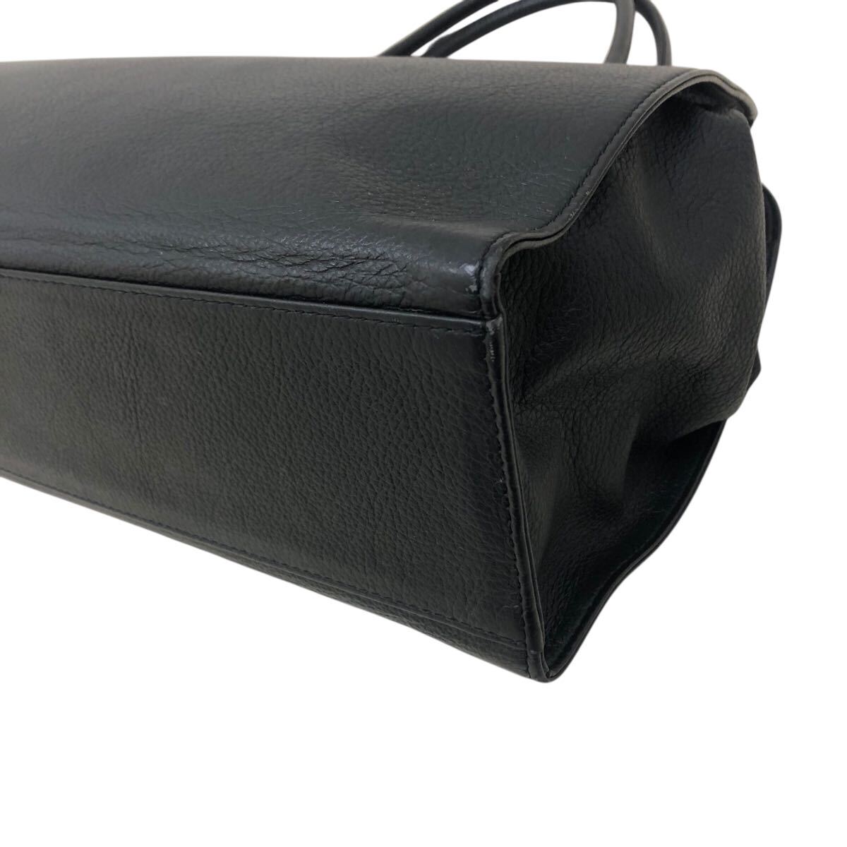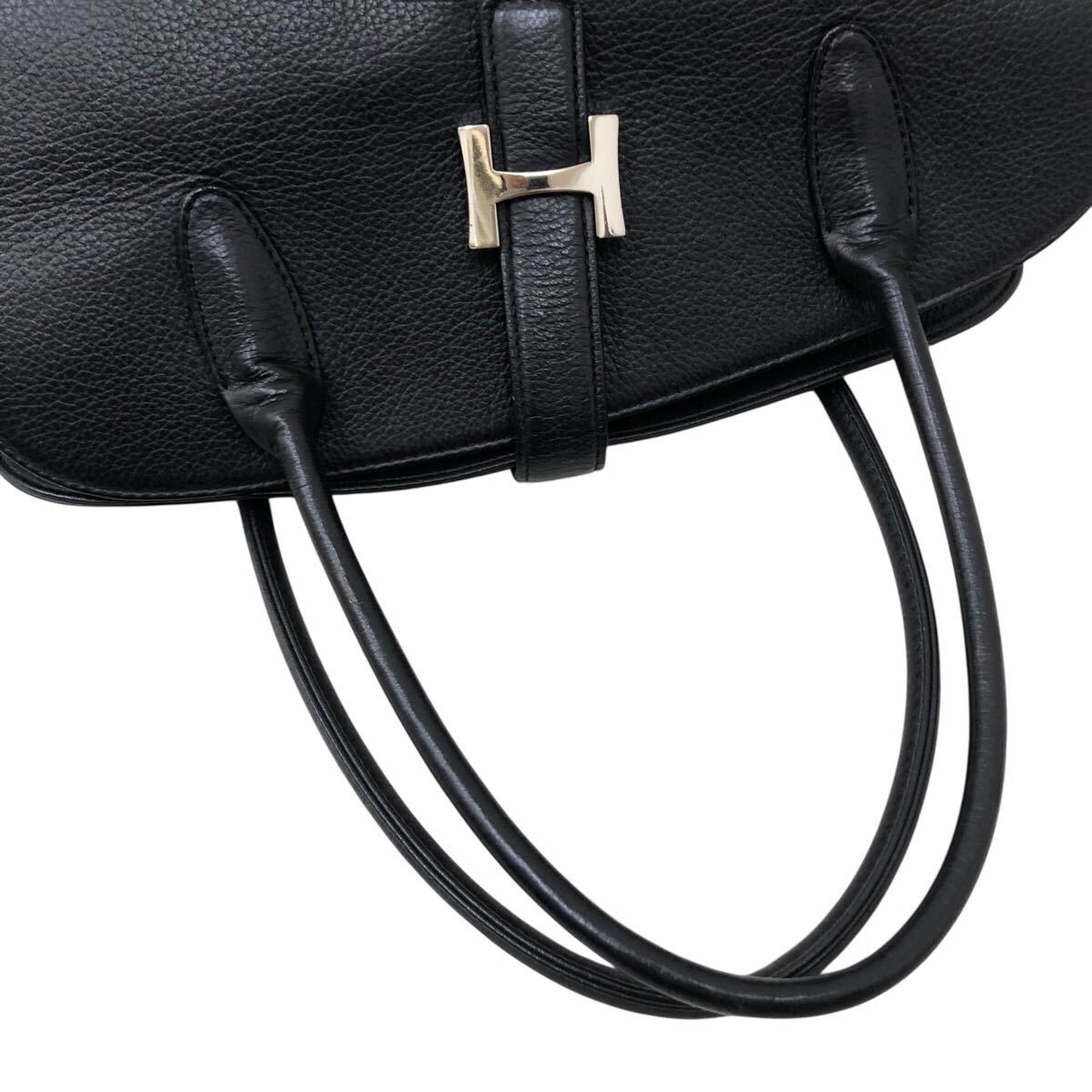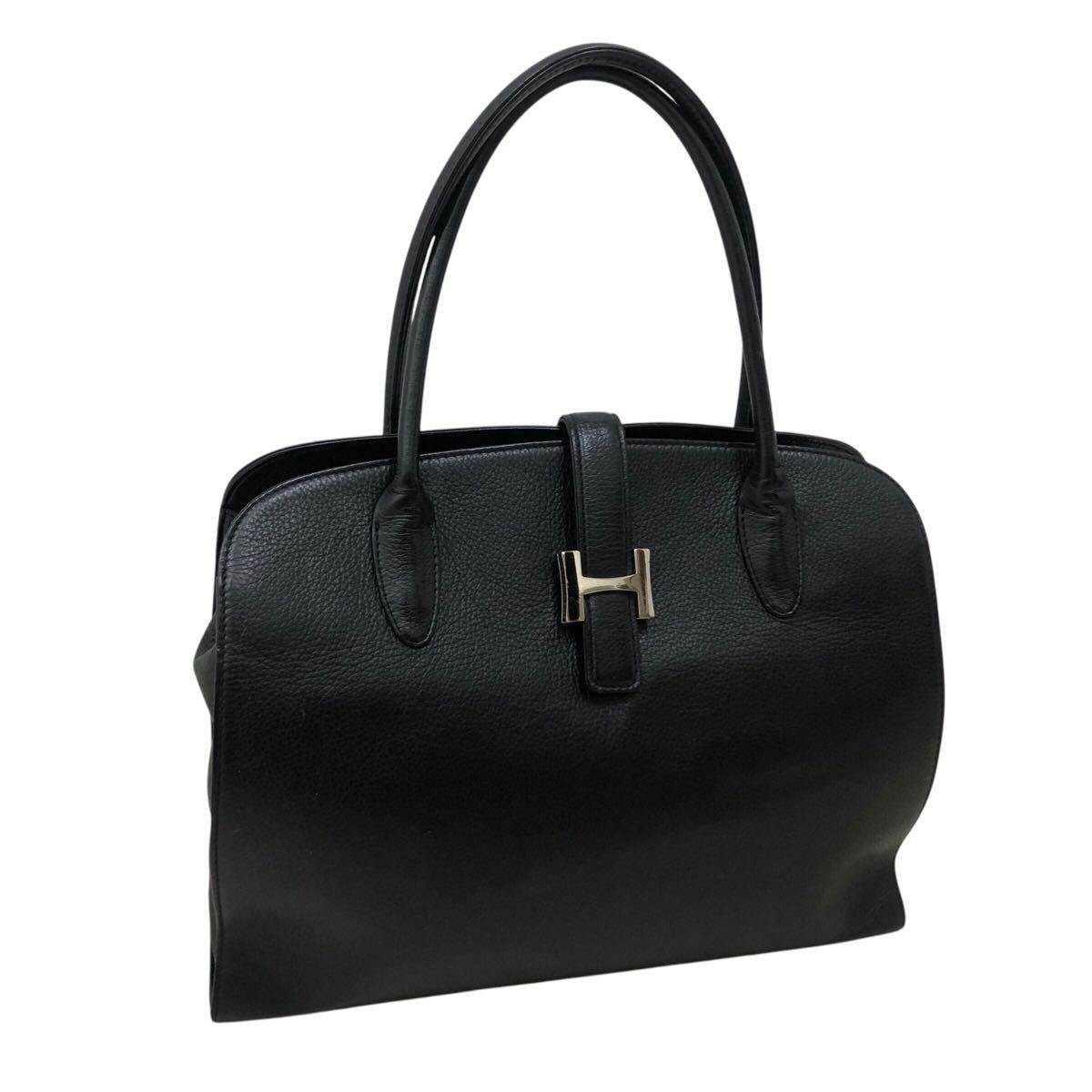 9k202-22 皇室御用達 濱野皮革工藝 ハマノ HAMANO レザー 本革 オールレザー ハンド バッグ Hロゴ 金具 鞄 カバン bag 黒