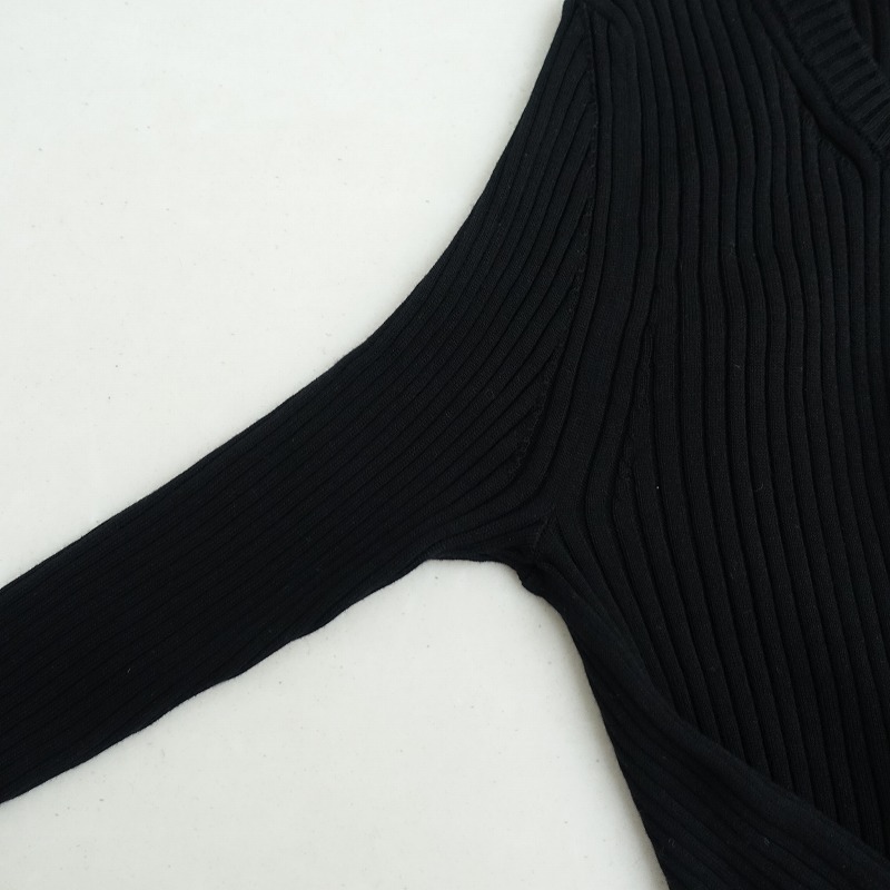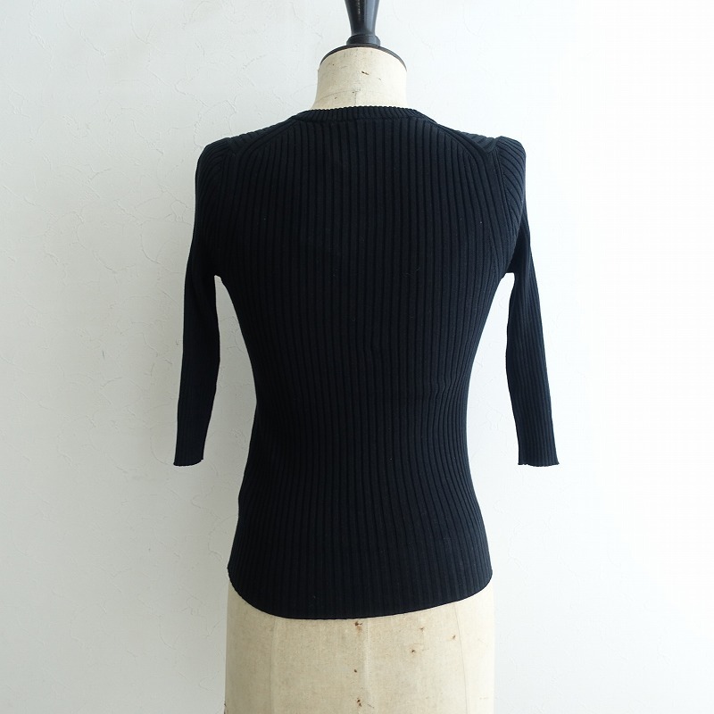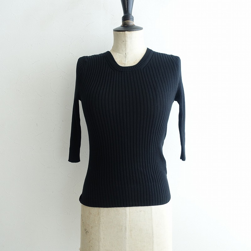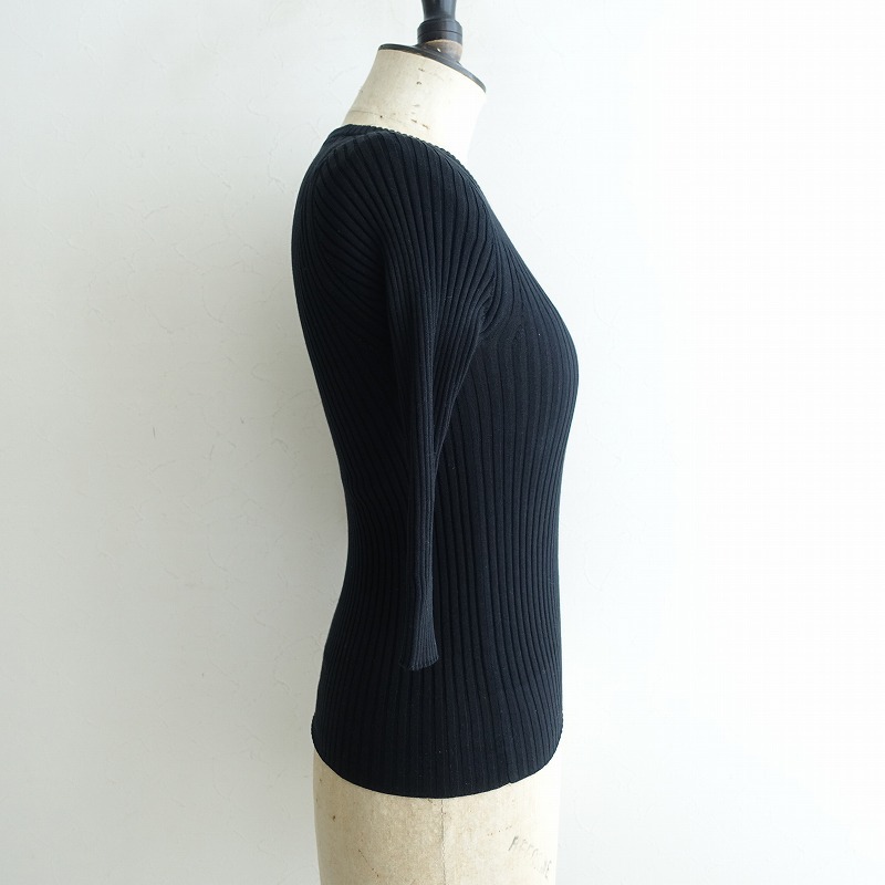 2025年春夏コレクション L’APPARTEMENTのコットンリブニットです。カラーはブラックで、綿のリブニット地です。プルオーバータイプで着脱できます。定価(メーカー希望小売価格)24,200円の商品です。 |