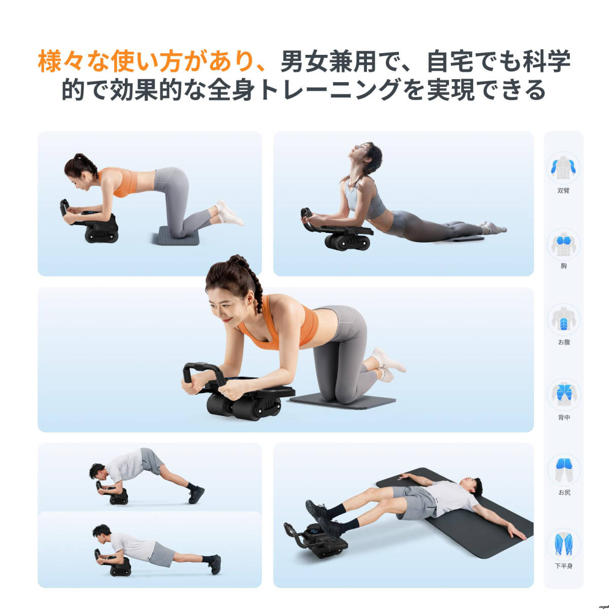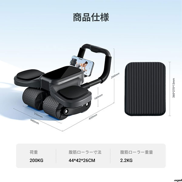 耐荷重200kgで幅広い体型に対応し、自動スプリングバック機能で効率的に腹筋を鍛えることが可能です。
