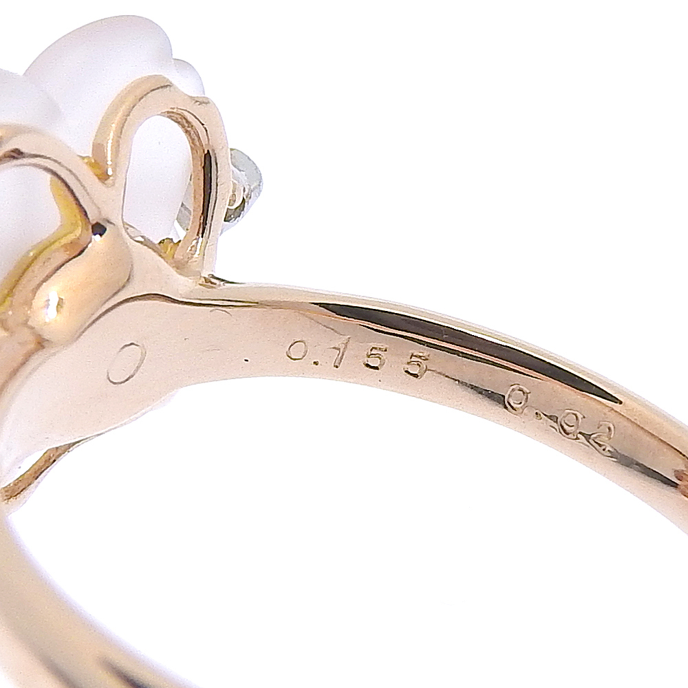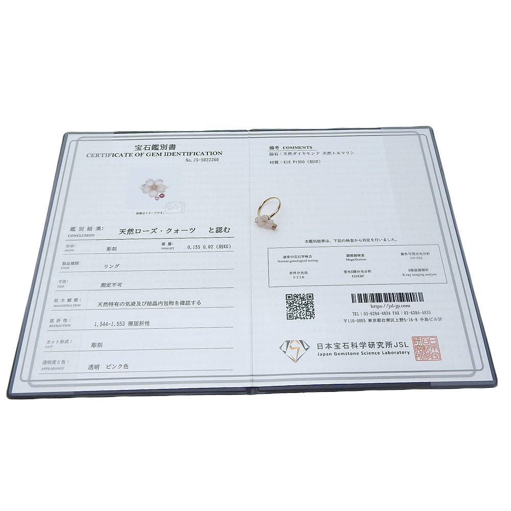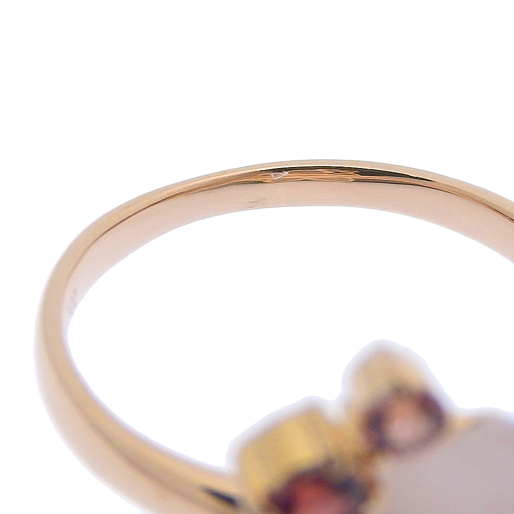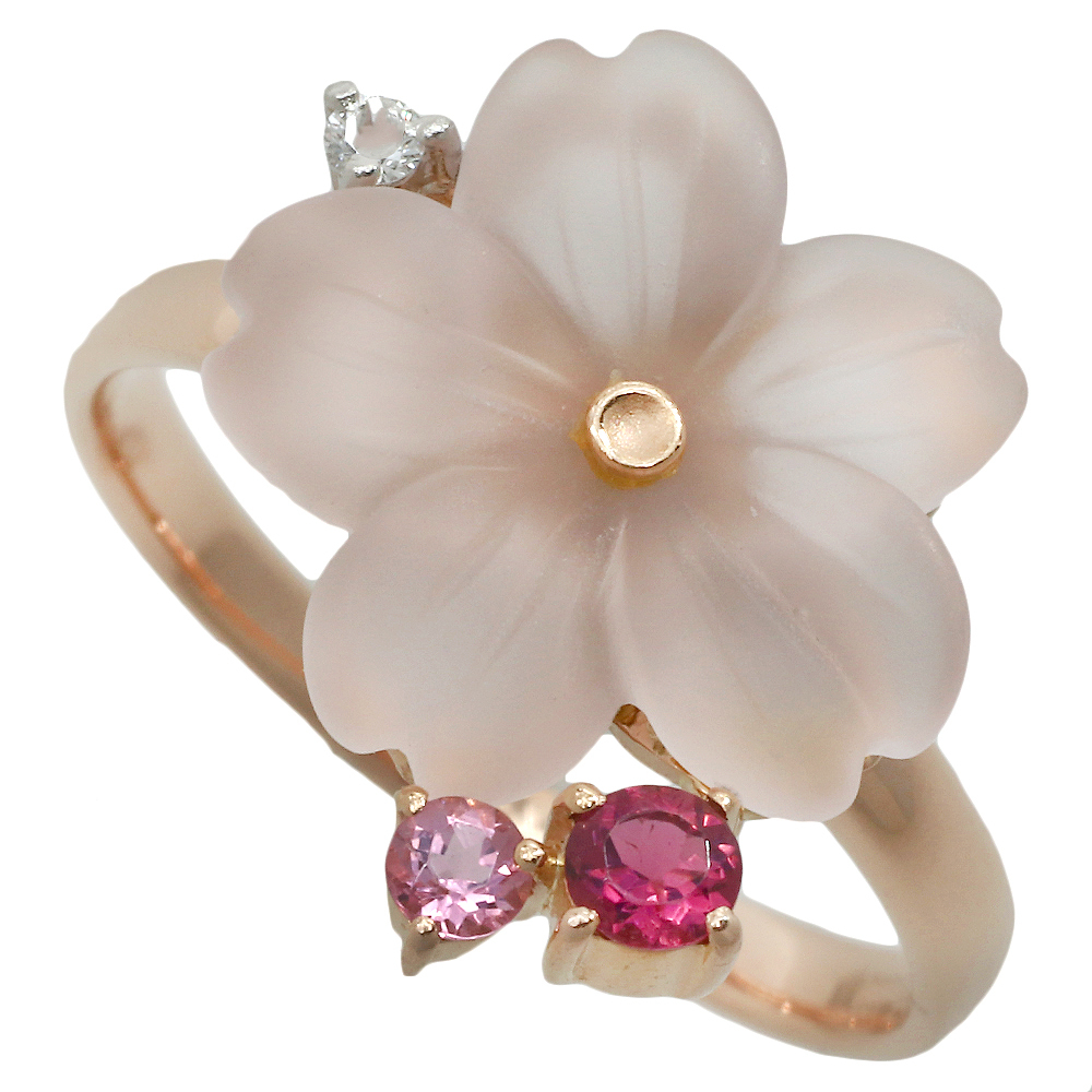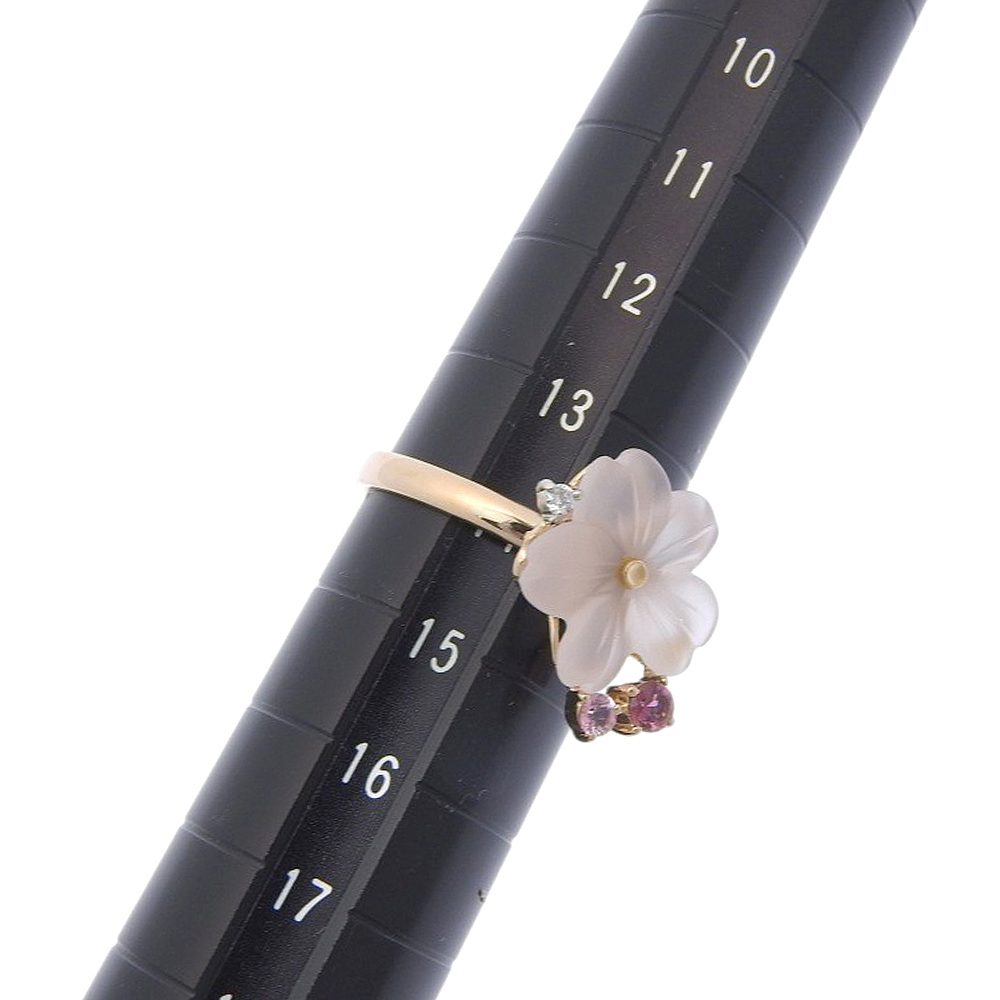 【本物保証】 鑑付 新品同様 フラワーモチーフリング 3.7g K18PG Pt900 ローズクォーツ ダイヤ0.02ct トルマリン0.155ct 14号 ノーブランド