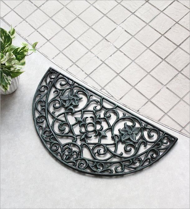 | ブートジャックと呼ばれる アイアンの砂落としマットです アンティークな青銅色のアイアンマットは 重量もしっかりあり、こするだけで 靴裏の泥や砂を簡単に落としてくれます お庭仕事の後で玄関やベランダに 土の足跡が付かないように・・・。 ハーフラウンドのブートジャック 鉄の冷たいイメージが ラウンド曲線で優しい雰囲気になっています [商品名]アイアンの玄関マット ハーフラウンド(toy1671) 全体サイズ(cm):幅70×奥行36×厚み2 *4隅に滑り止めのゴム脚付き 重量:約5kg 材質:アイアン鋳物 注)商品の特製上、レトロな風合いをペイントで表現した味わいのある商品です。予めご了承下さい。 ※マットの厚みがドアの開閉に支障が無いか、設置予定場所の寸法(ドア下の空間サイズ)をよくご確認の上ご検討下さい |