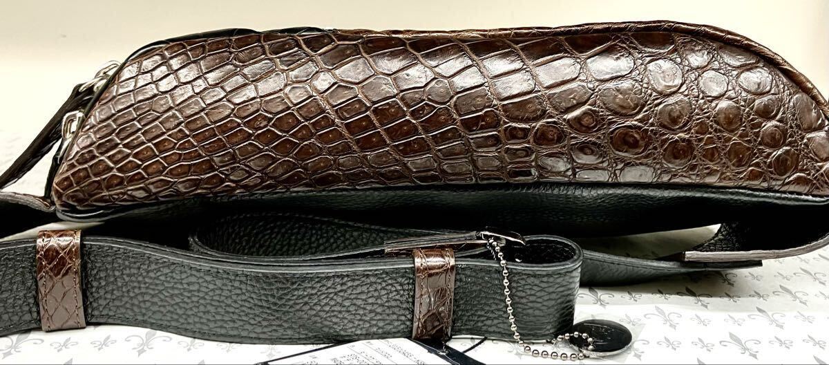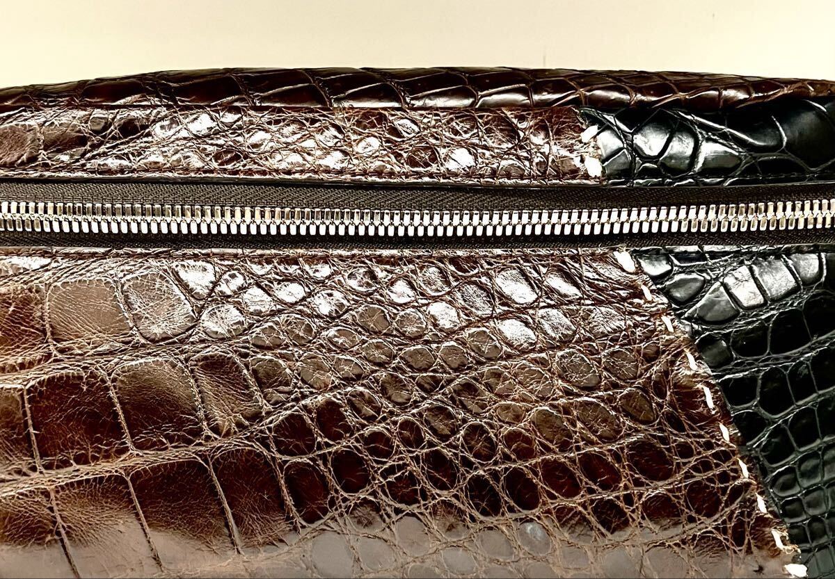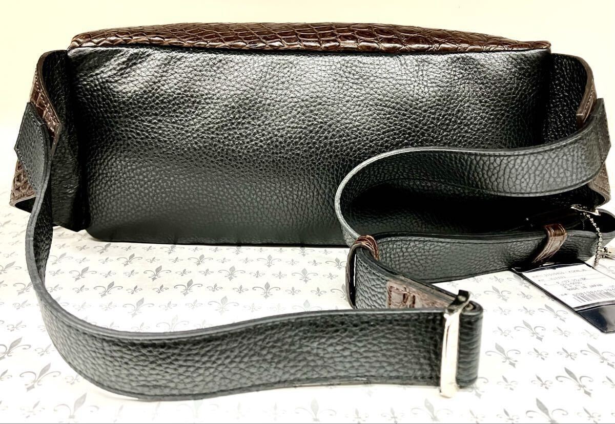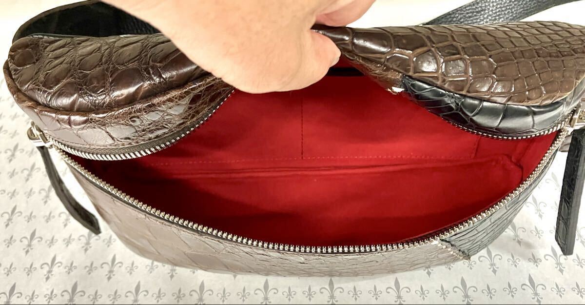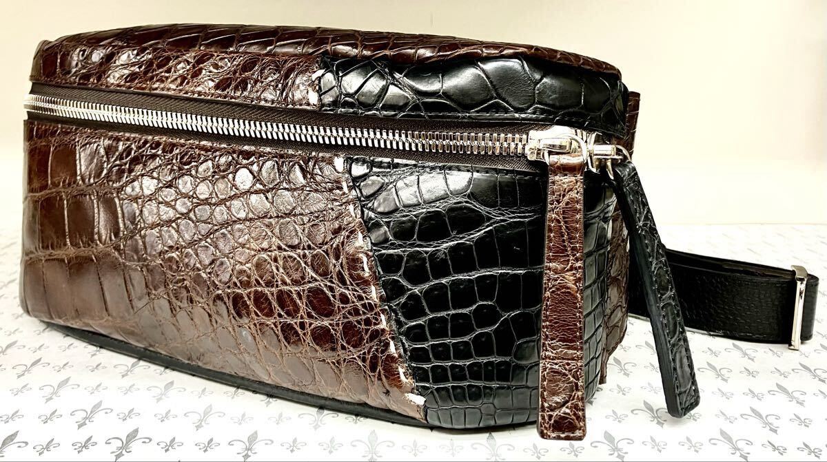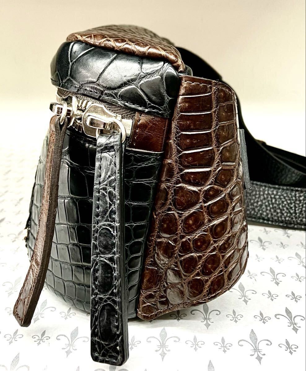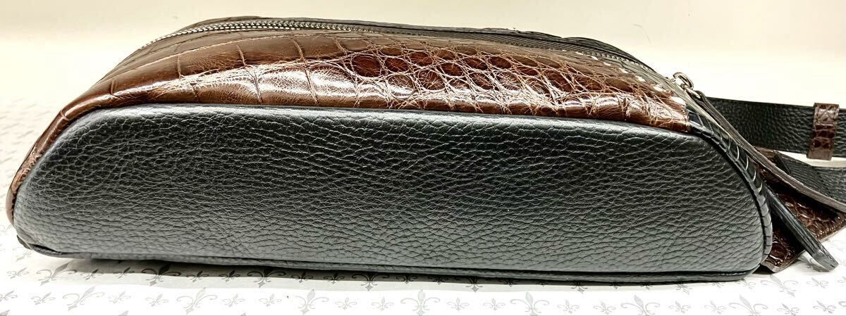 国産、日本製のクロコダイルワニ革使いの男女兼用2WAYボディバック&ウエストポーチです。