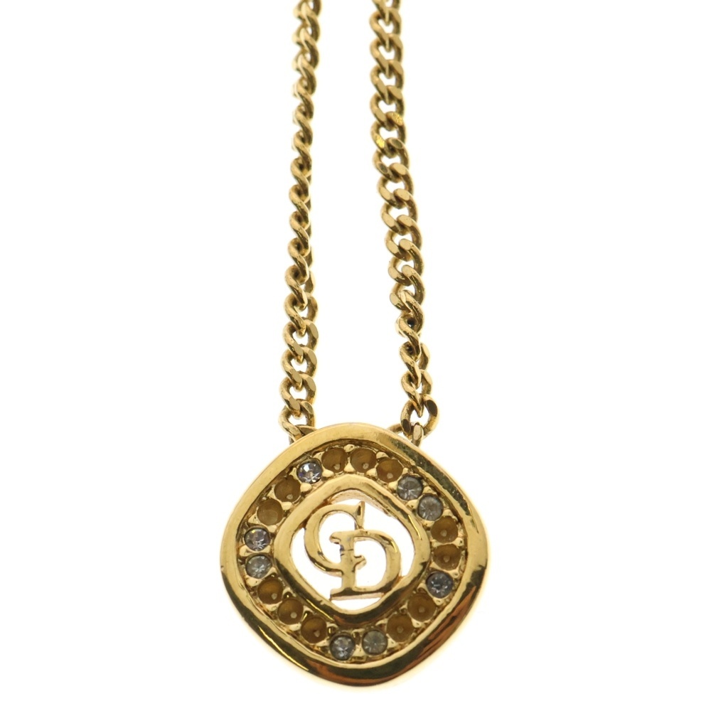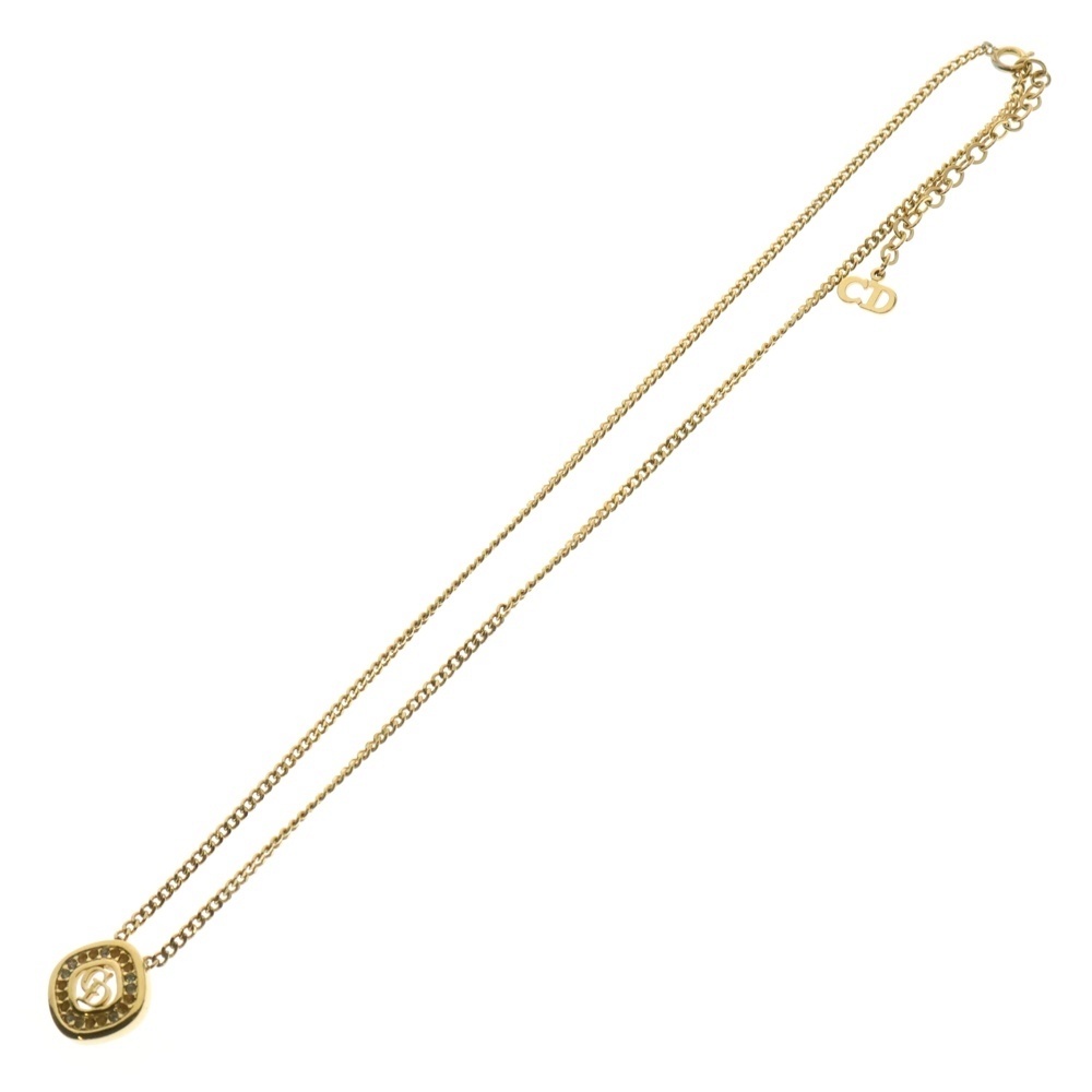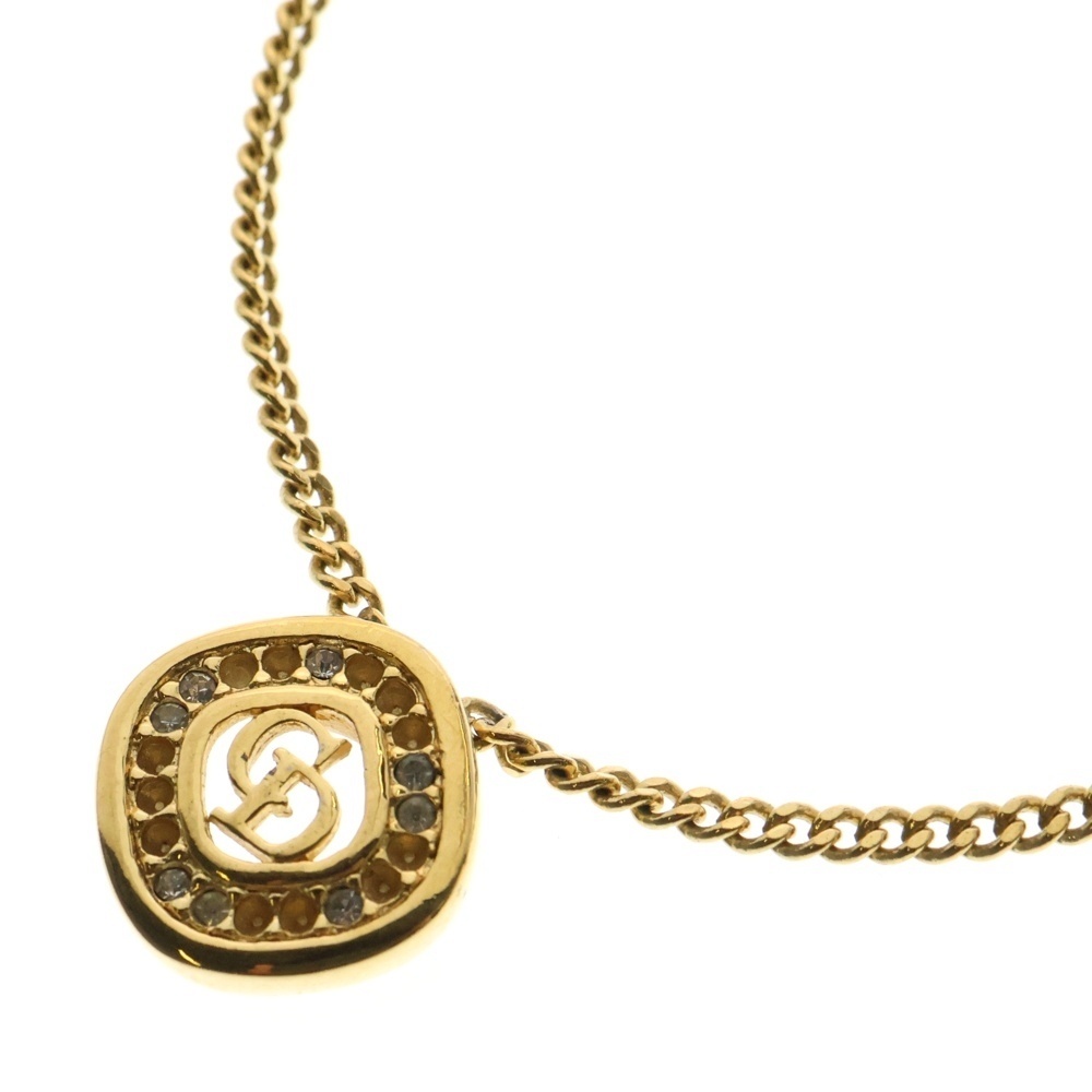 Christian Dior クリスチャンディオール CDロゴ ラインストーン ペンダントネックレス ゴールド