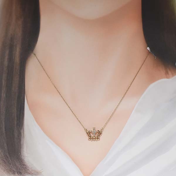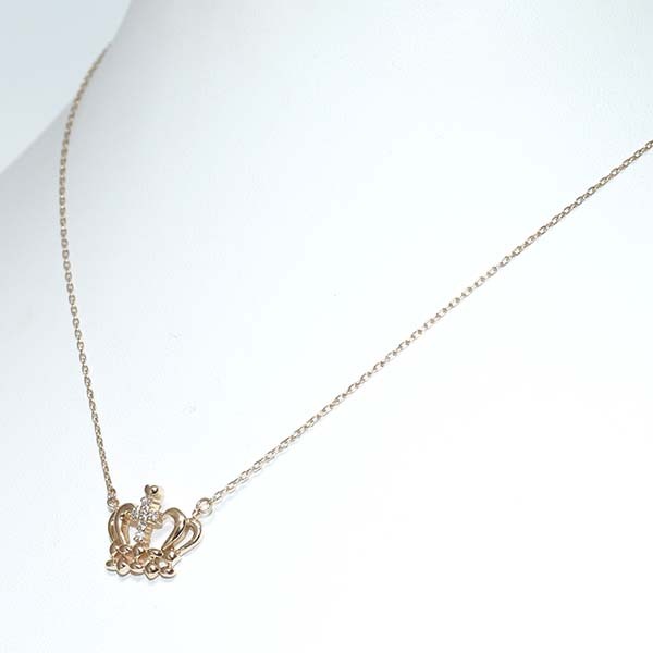 王冠モチーフにダイヤをセットしたサマンサティアラの18金ピンクゴールド製ネックレス。