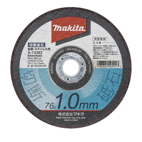 マキタ充電式コンパクトカッタMC300DZ用 両面補強 金属・ステンレス用 外径76mm 厚さ1.0mm 内径10mm | ||||