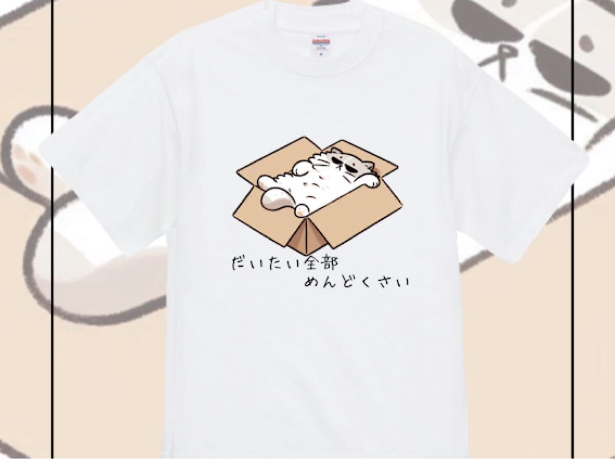 段ボールの中でくつろぐ猫が、すべての『めんどくさい』を代弁してくれます。